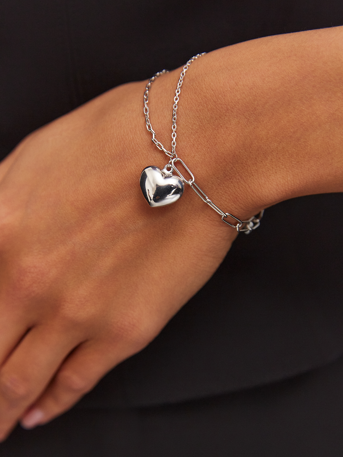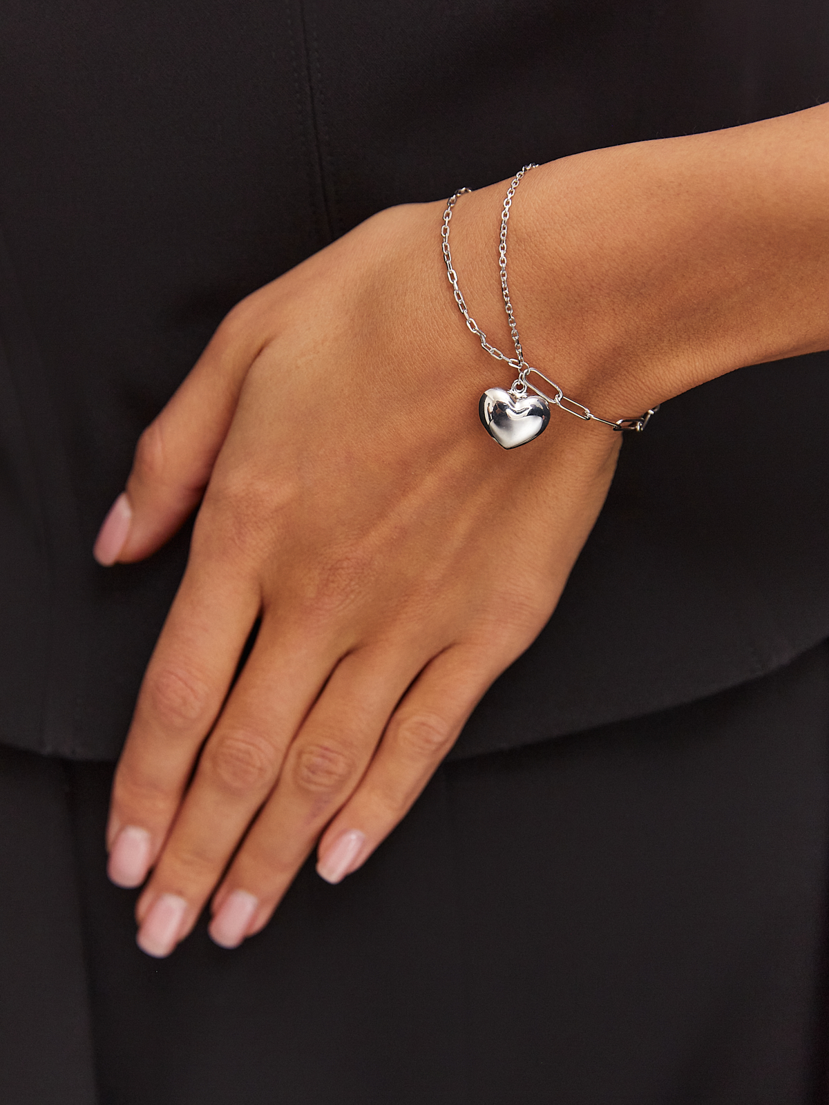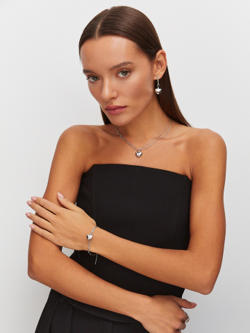 Браслет серебряный женский на руку 925 с сердцем без камней