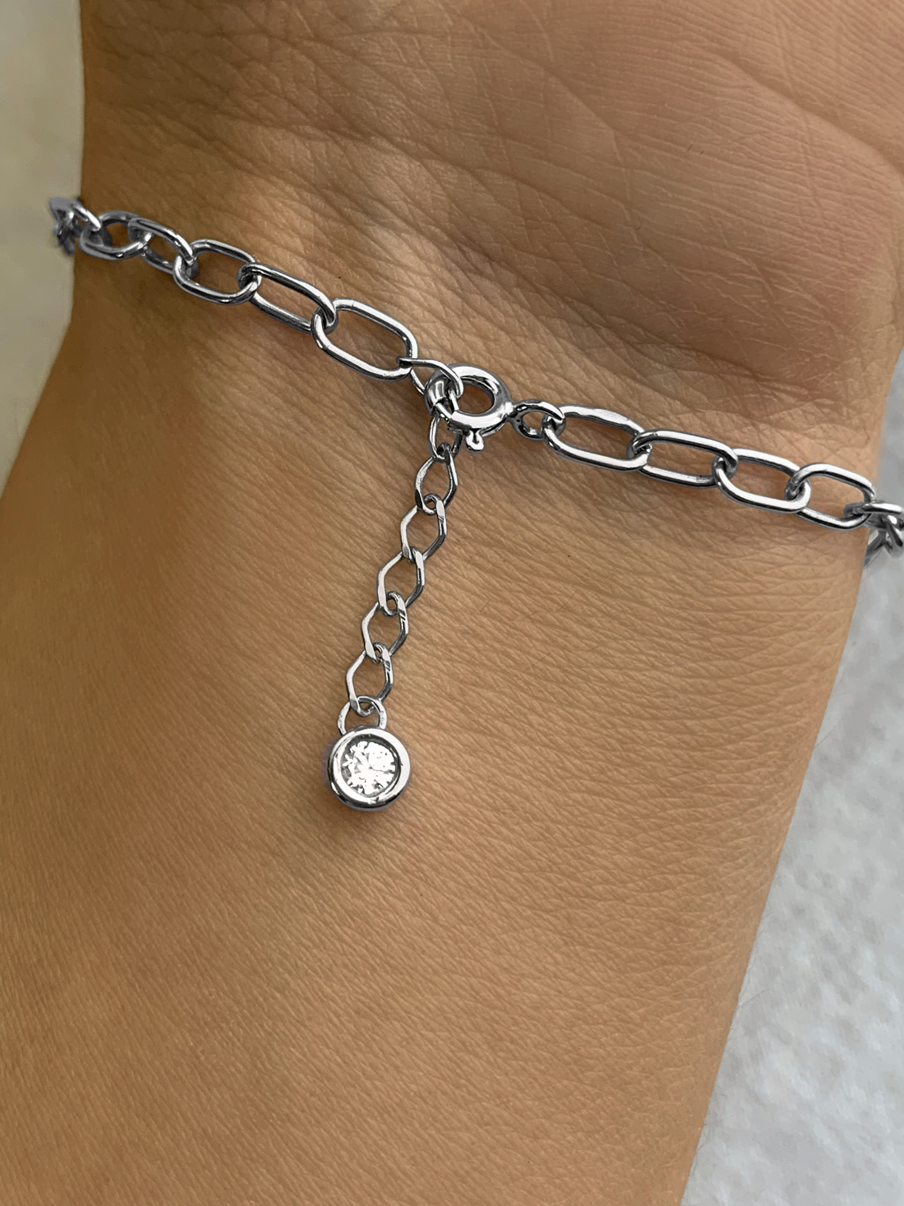 Браслет серебряный женский на руку 925 цепочка с камнем фианитом