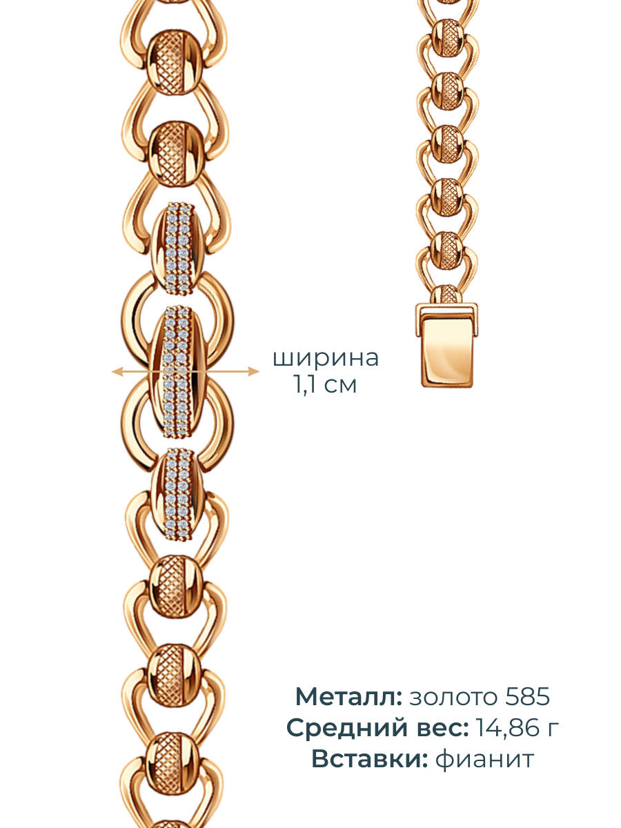 Браслет широкий золотой 585 с фианитами 11 мм 2520106-00770