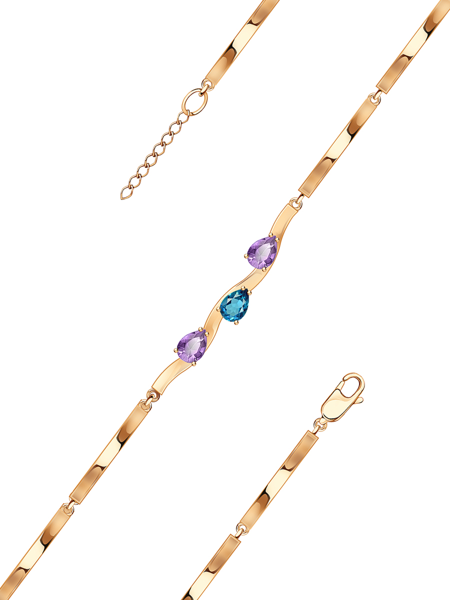Браслет 7101577-00900 Au 585 (2020229218541(2 Амет. груша 6,00*4,00 0,74 ct ,1 Топ. груша 6,00*4,00 0,47 ct))