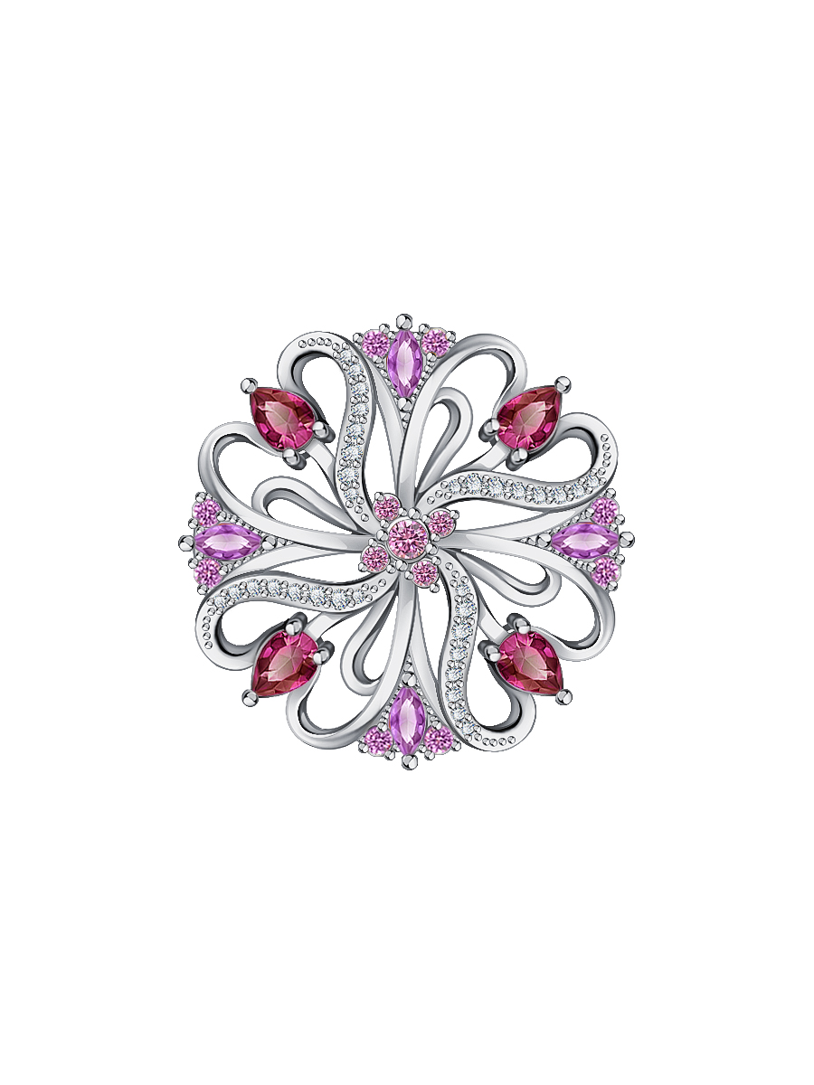Брошь цветок из серебра 925 с фианитами 2700024-01345