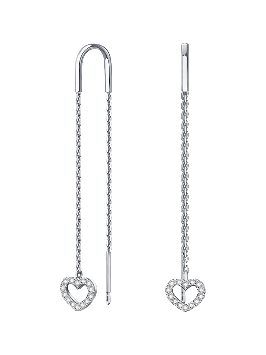 Серьги протяжки сердечки из серебра 925 0221260-00775