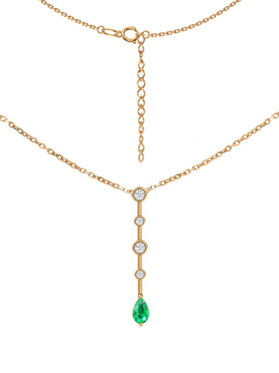 Колье галстук золотое 585 с изумрудом и бриллиантами