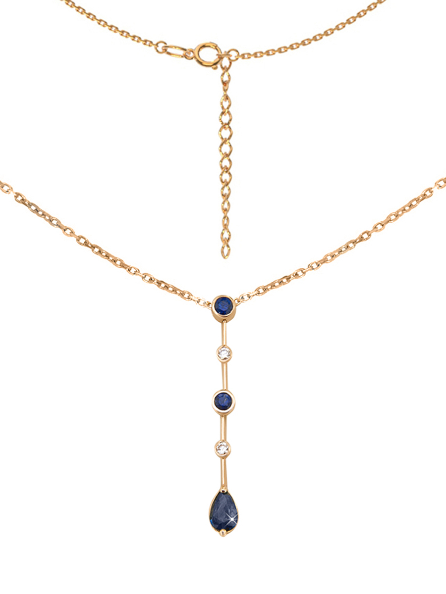 Колье 3120259-10050 Au 585 (2020222400516(2 Бр. кр57 (2,00) 0,062 ct 4/5 /А ,2 Сапф. круг 3,00 0,024 ct 2/2 синий ,1 Сапф. груша)