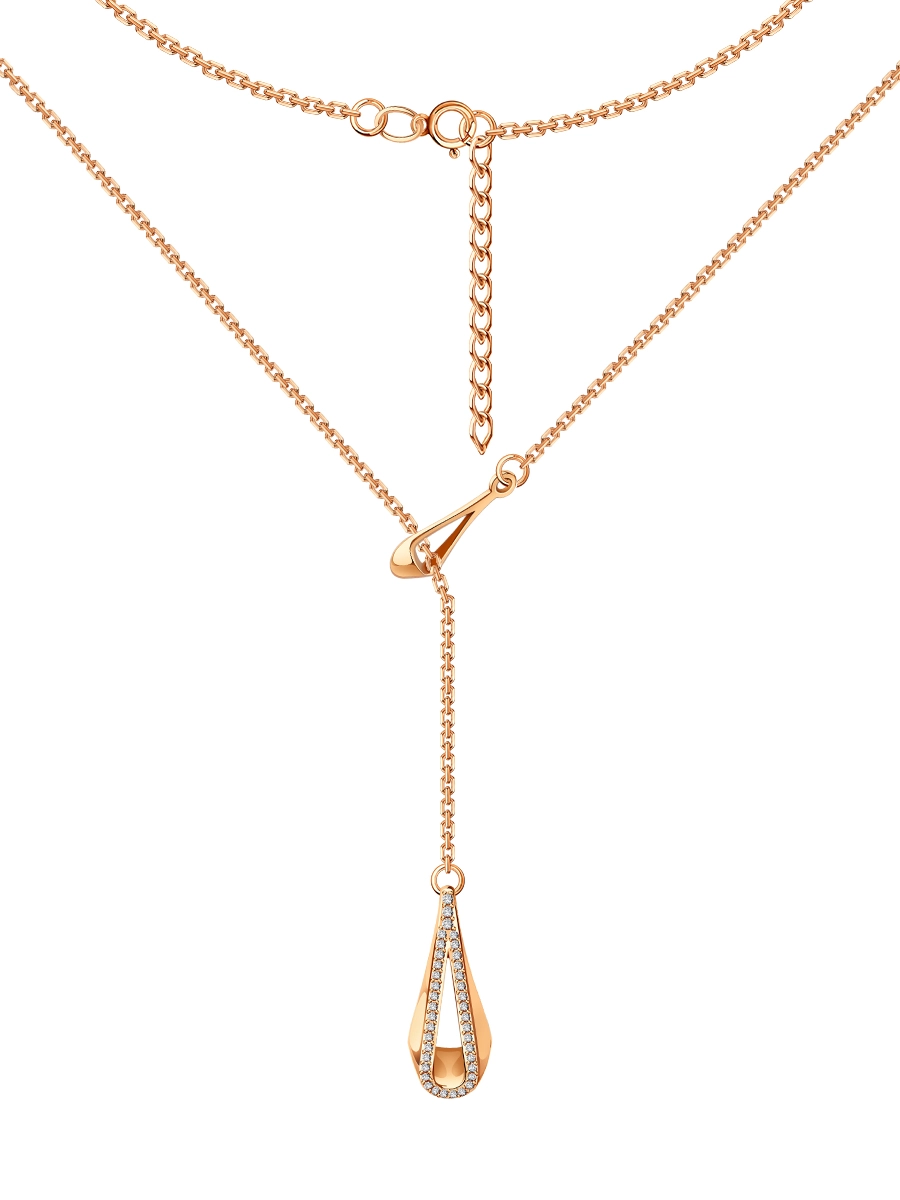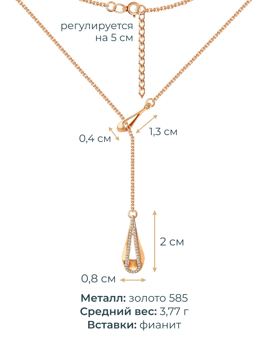 Колье галстук золотое 585 с камнями фианитами 3121272-00770