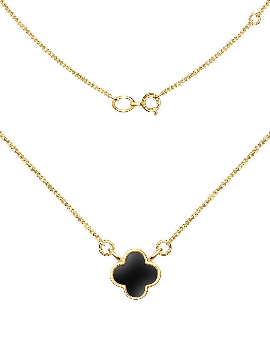 Колье клевер золотое 585 с черной эмалью 9321036-00871
