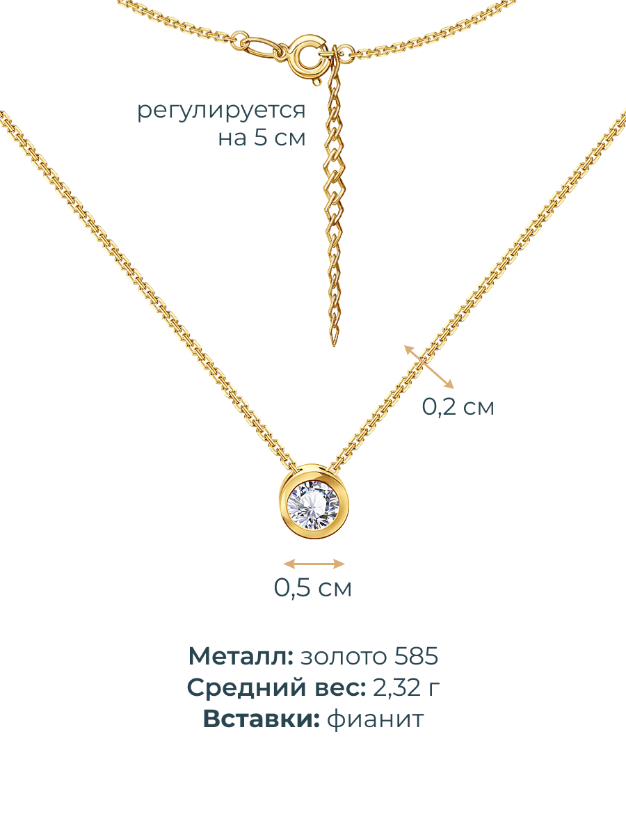Колье золотое 585 подвеска с крупным фианитом 0320175-00771