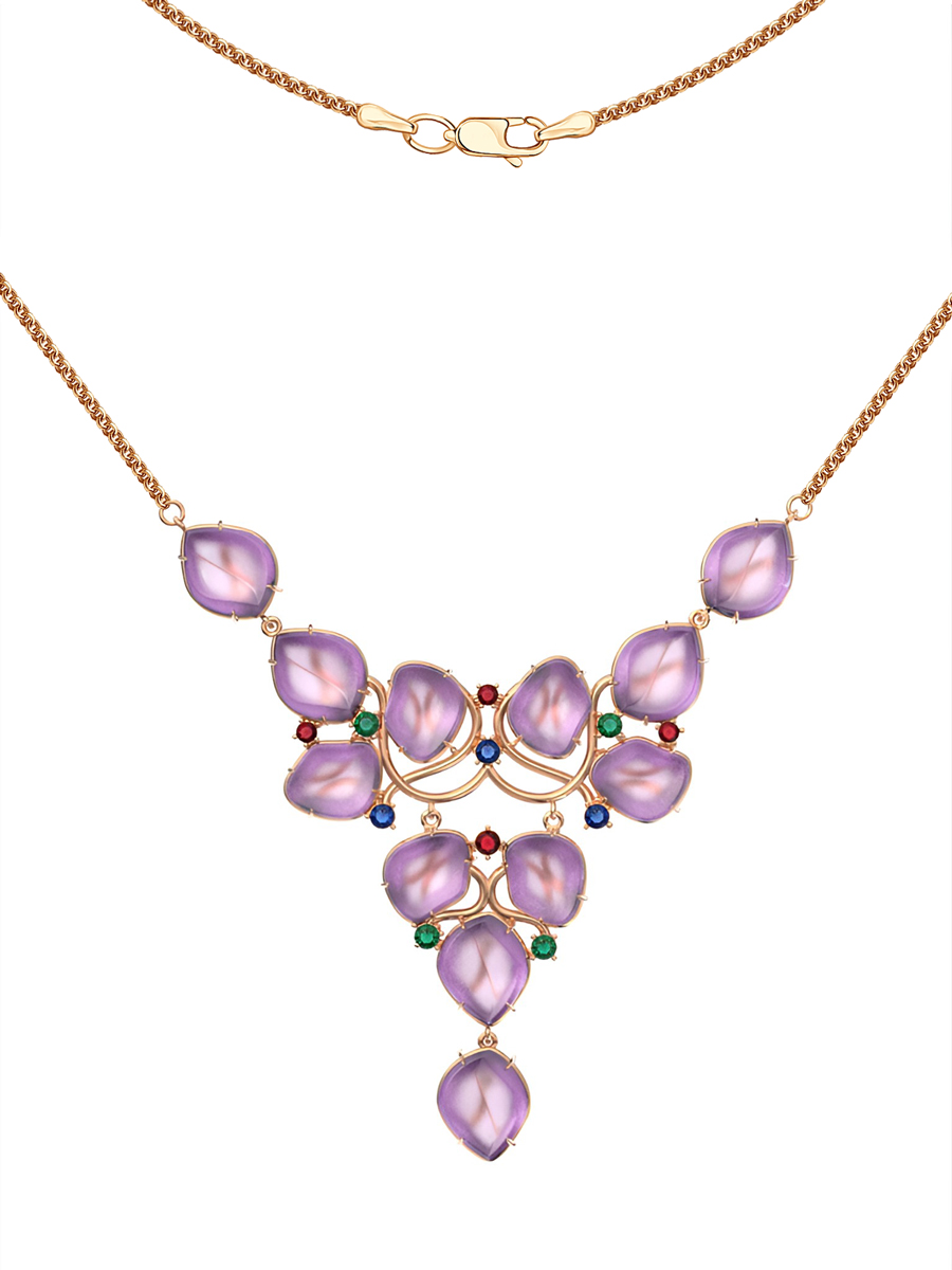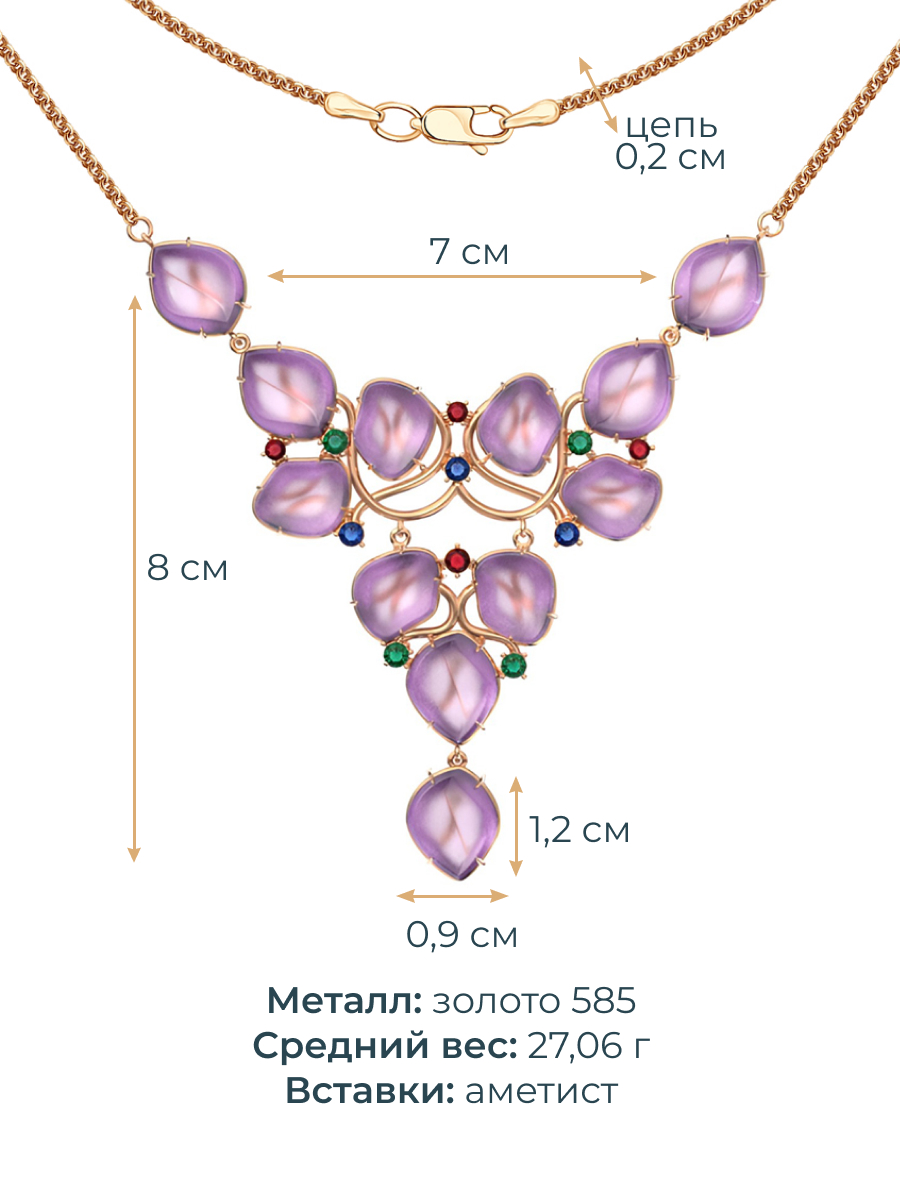 Колье 9321251-05850 Au 585 (2020255031480 (6 Амет. лепесток 13,50*11,00 19,98 ct ,6 Амет. лепесток 11,00*10,00 16,56 ct ,4 Цавор)