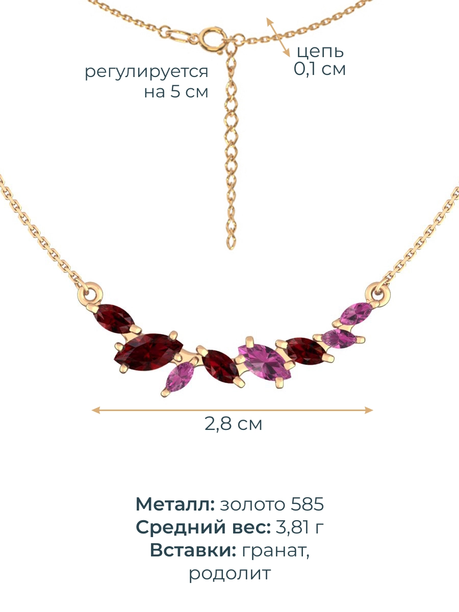 Колье 0320421-00310 Au 585 (2020249844041(3 Гранат маркиз 5,00*2,50 0,57 ct ,1 Гранат маркиз 7,00*3,50 0,45 ct ,1 Родол. маркиз )