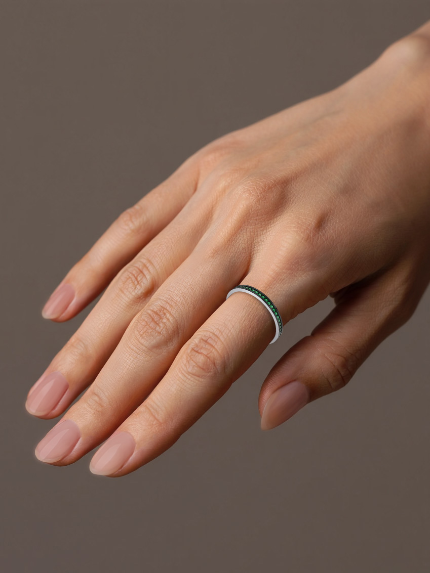 Кольцо дорожка серебряное 925 с зелеными фианитами 0101184-00445