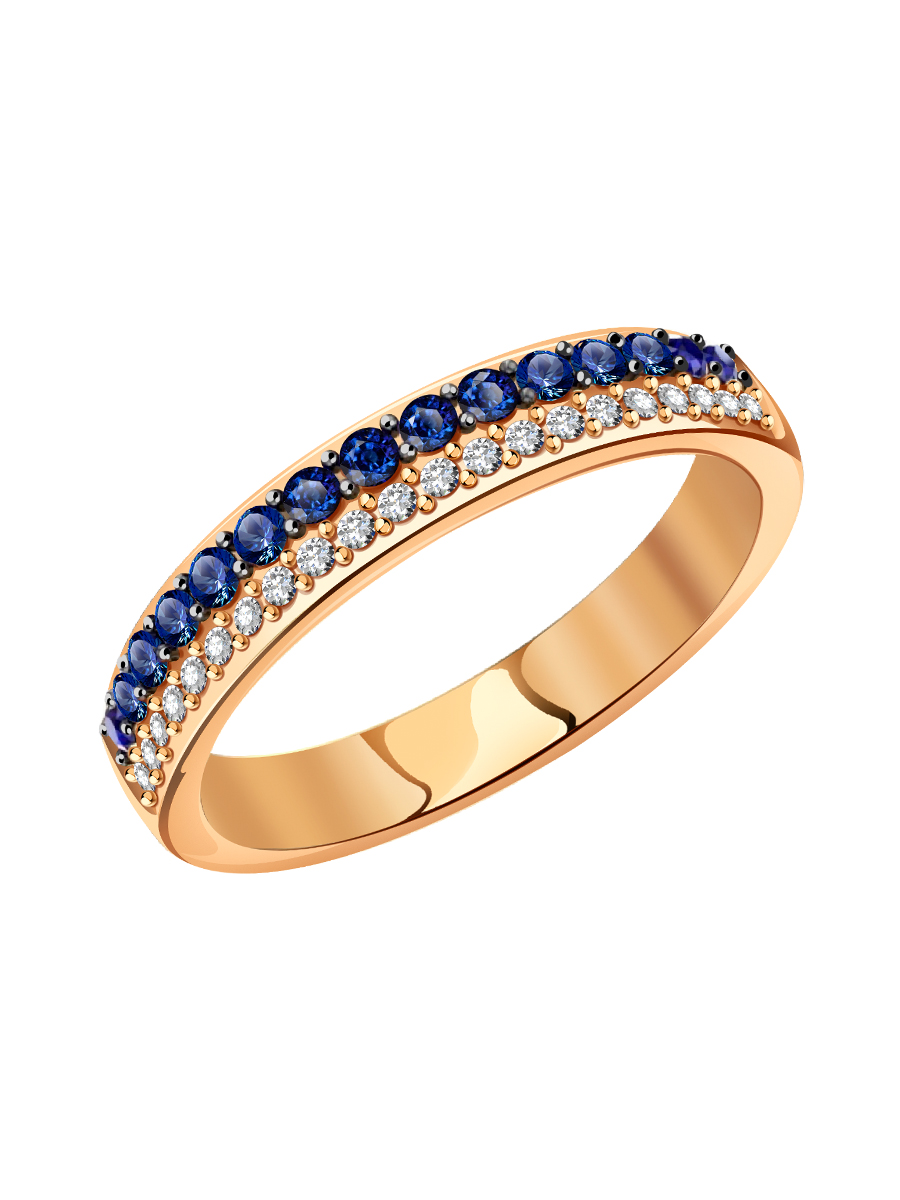 Кольцо дорожка золотое 585 с сапфирами и бриллиантами