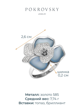 Кольцо также украшено Топазом Лондон Блю, который придает ему дополнительную изюминку и элегантность.