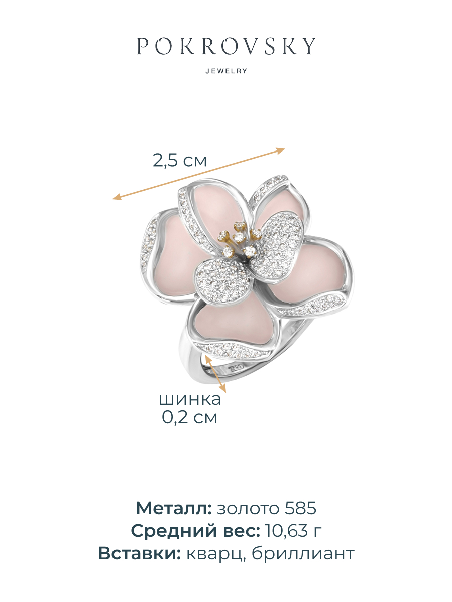 Кольцо эйфория из белого золота 585 с кварцем и бриллиантами