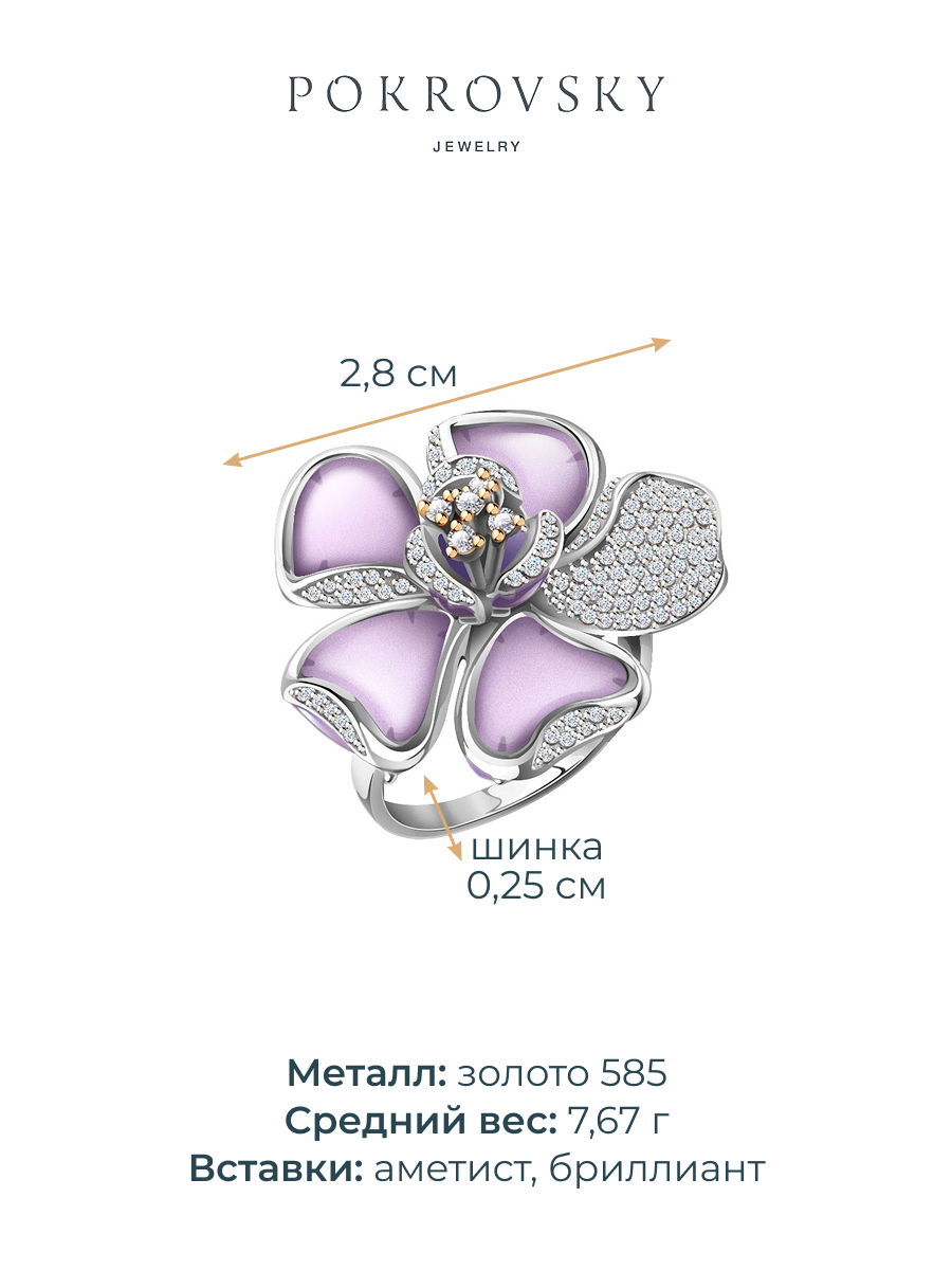 Кольцо эйфория золотое 585 с аметистами и бриллиантами