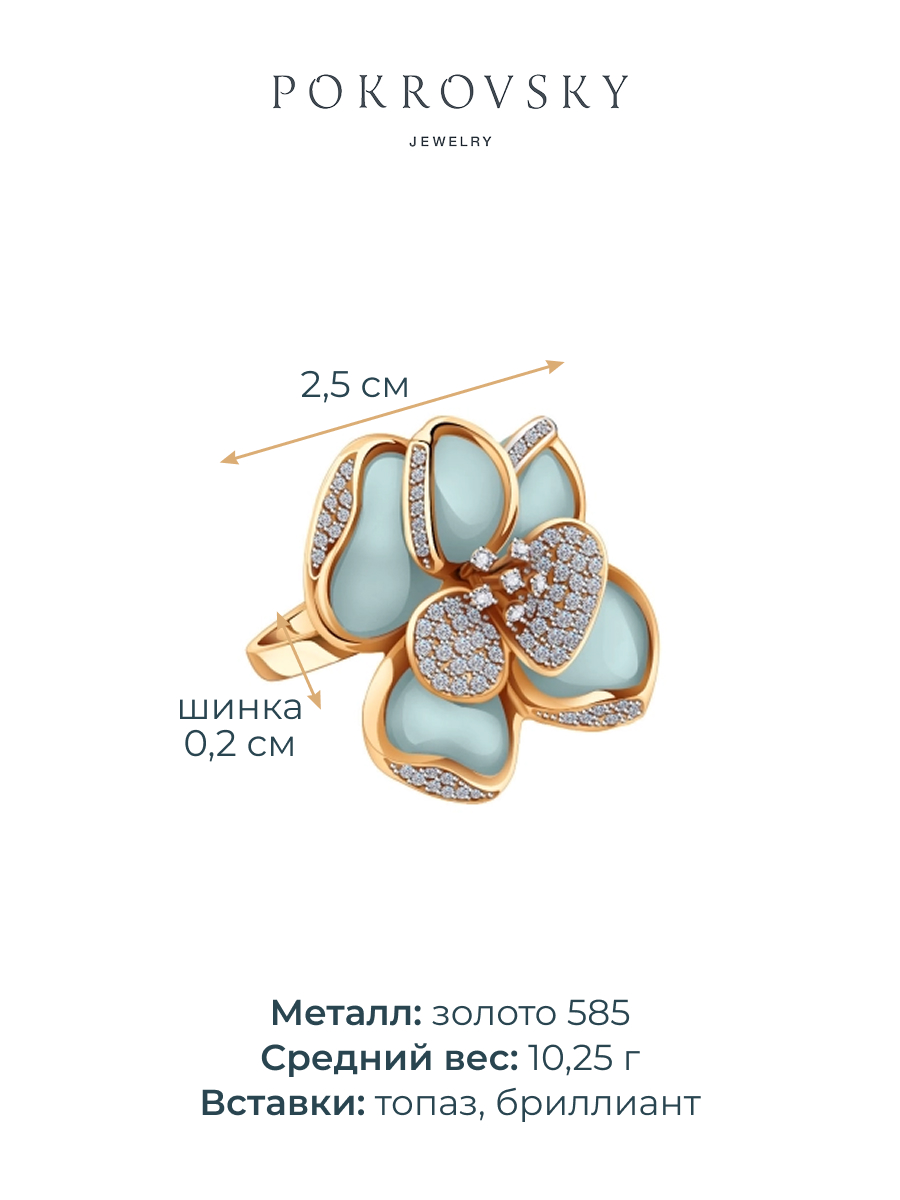 Кольцо эйфория золотое 585 с топазами и бриллиантами