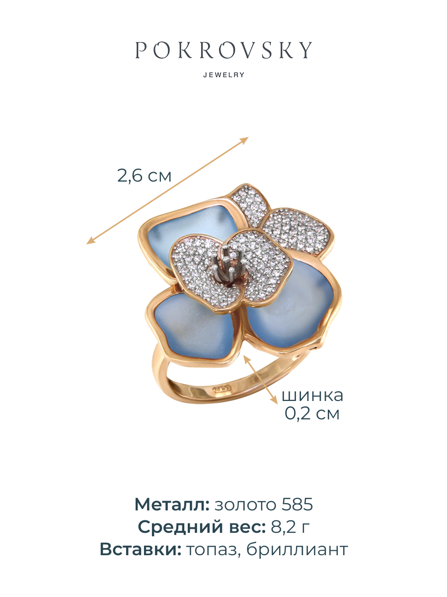 Кольцо эйфория золотое 585 с топазами и бриллиантами