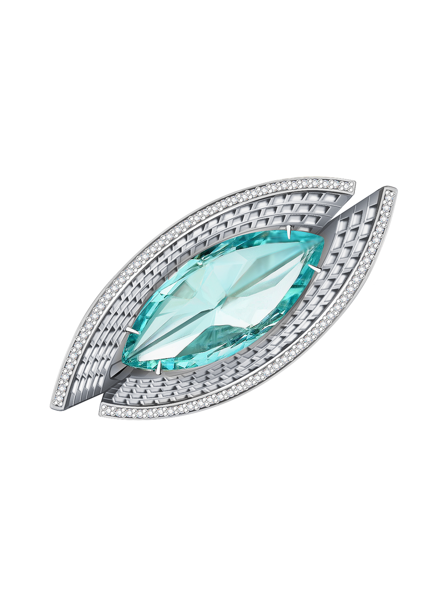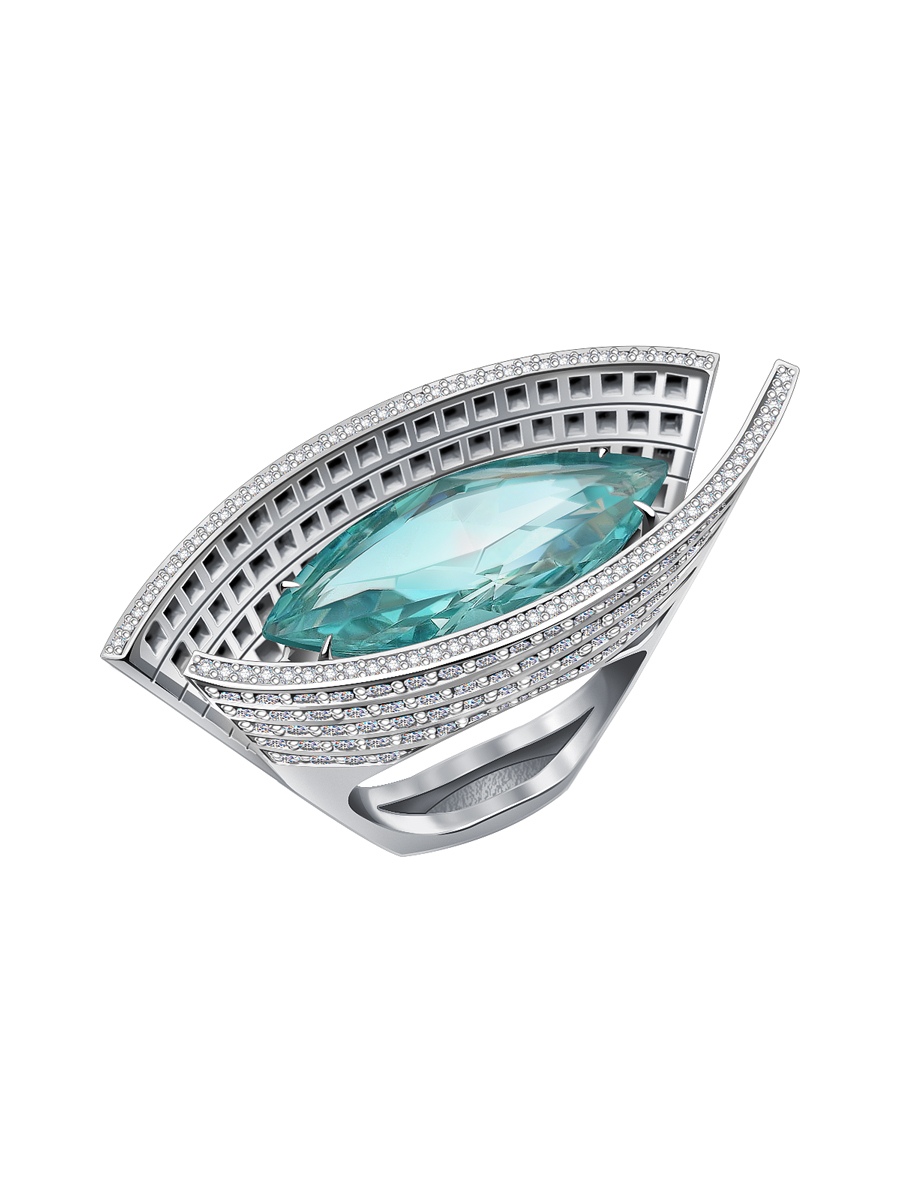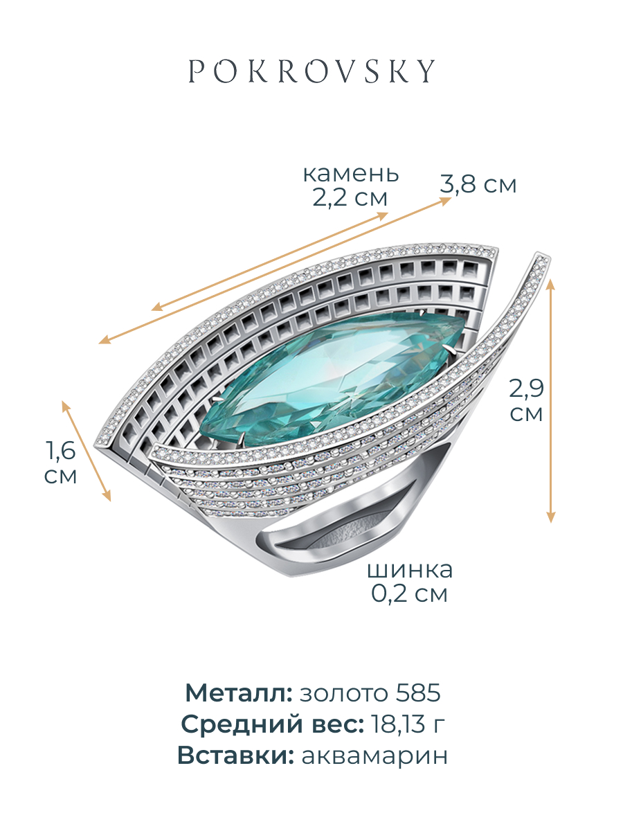 Кольцо из белого золота 585 с аквамарином аква сапфирами и бриллиантами 9101405-01912