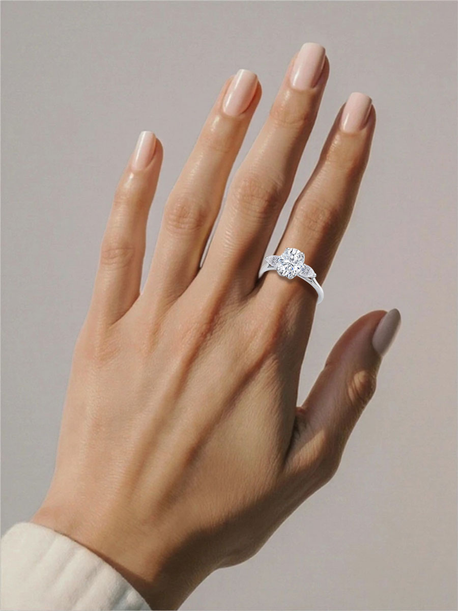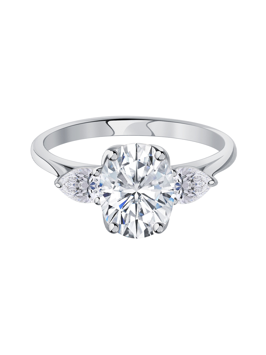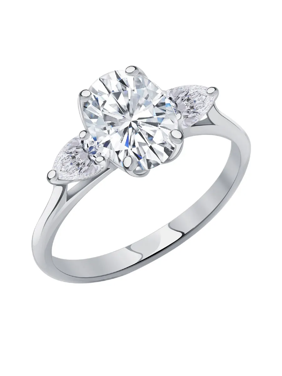 Кольцо 0101853М06422 Au 585 (2020267840445 (1 Бр.лаб овал-57 8,00*6,00 1,17 ct 3/5 ,2 Бр.лаб груша-56 4,00*3,00 0,264 ct 3/5))