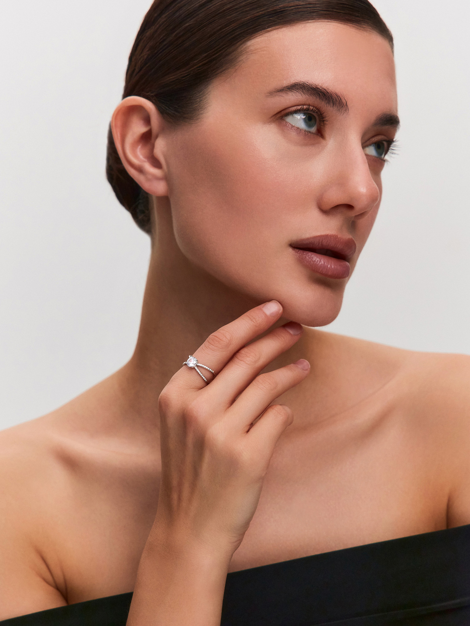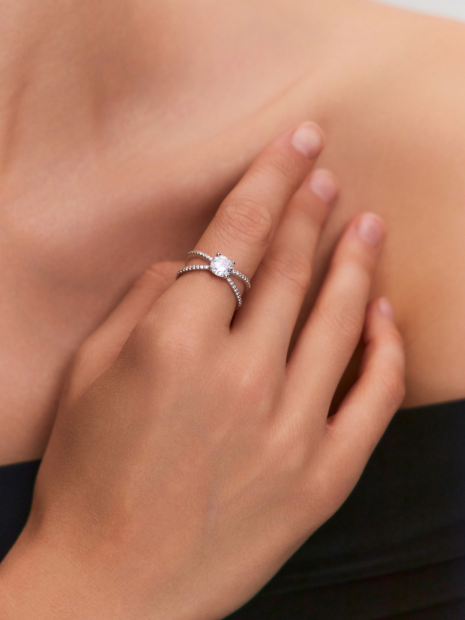 Кольцо из белого золота 585 с фианитами
