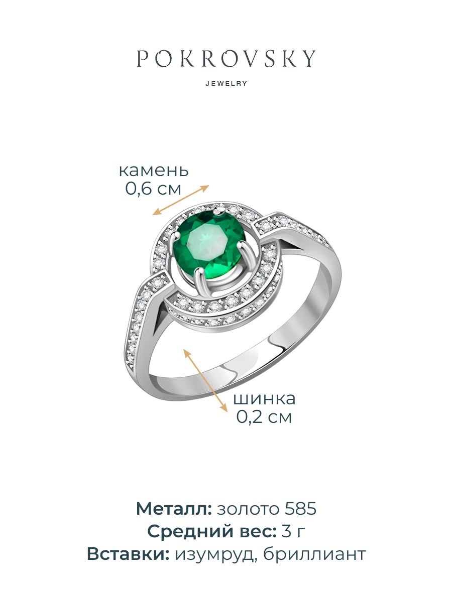 Кольцо из белого золота 585 с изумрудом и бриллиантами 1100187-00062