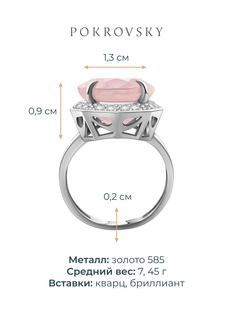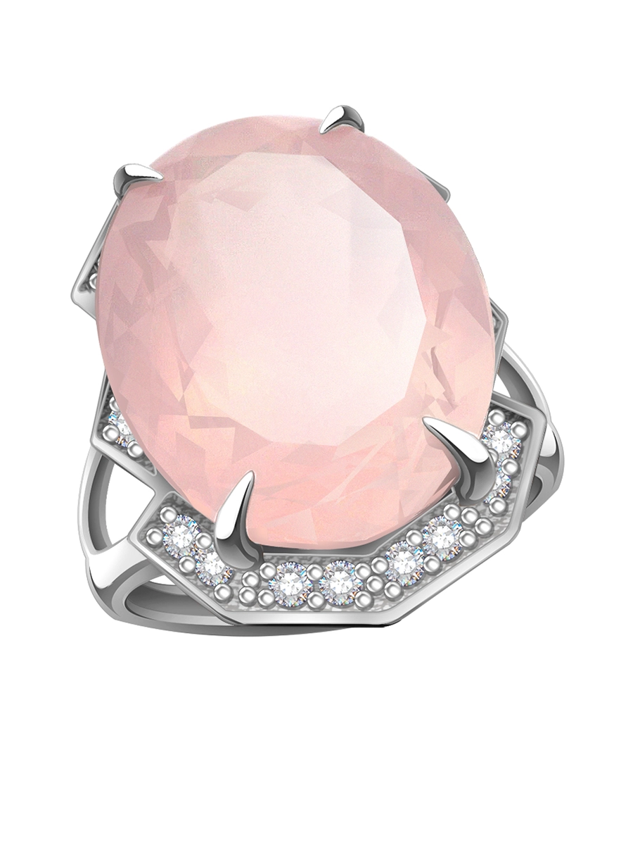 Кольцо из белого золота 585 с розовым кварцем и бриллиантами