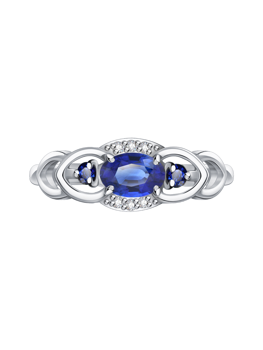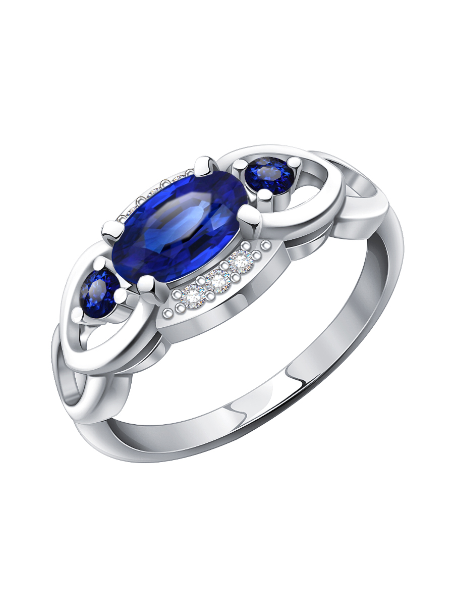 Кольцо из белого золота 585 с сапфирами и бриллиантами 1101278-00052