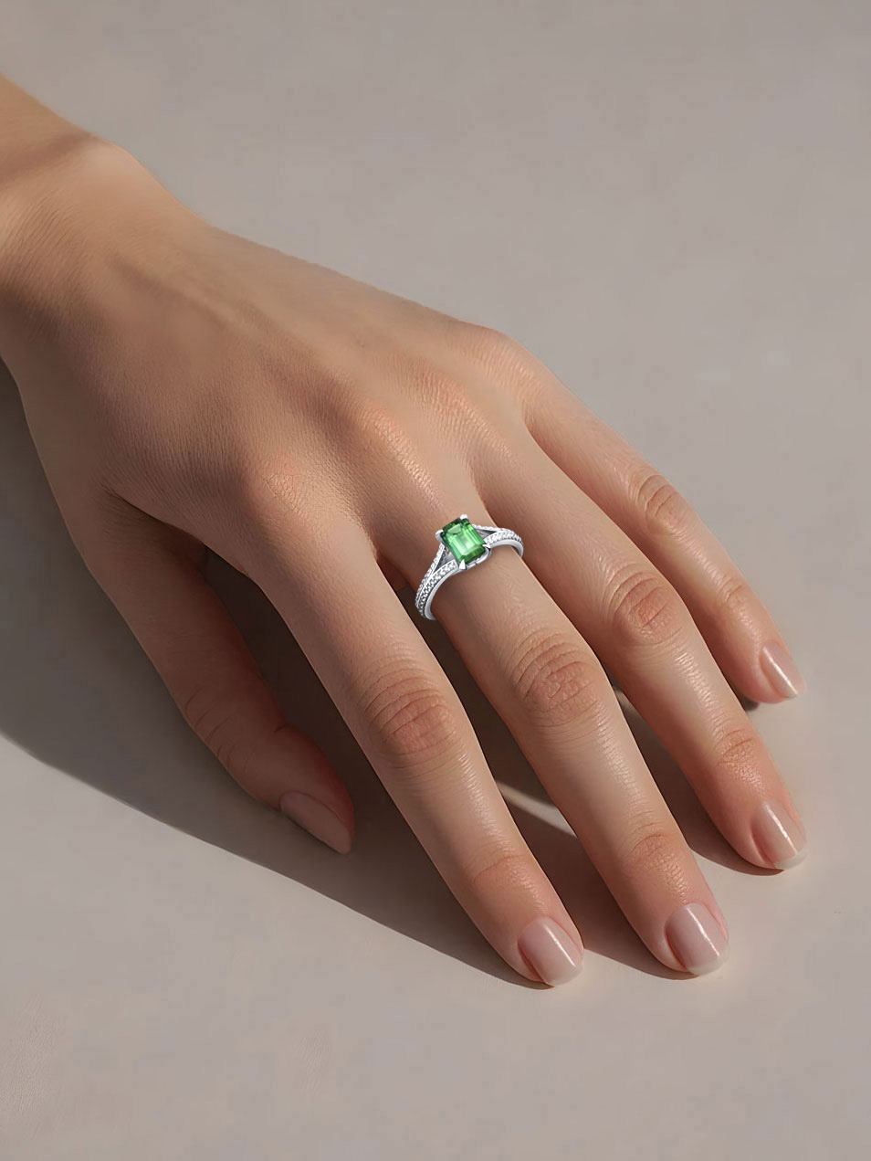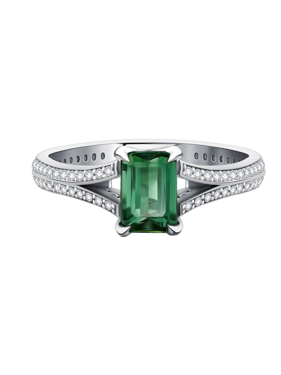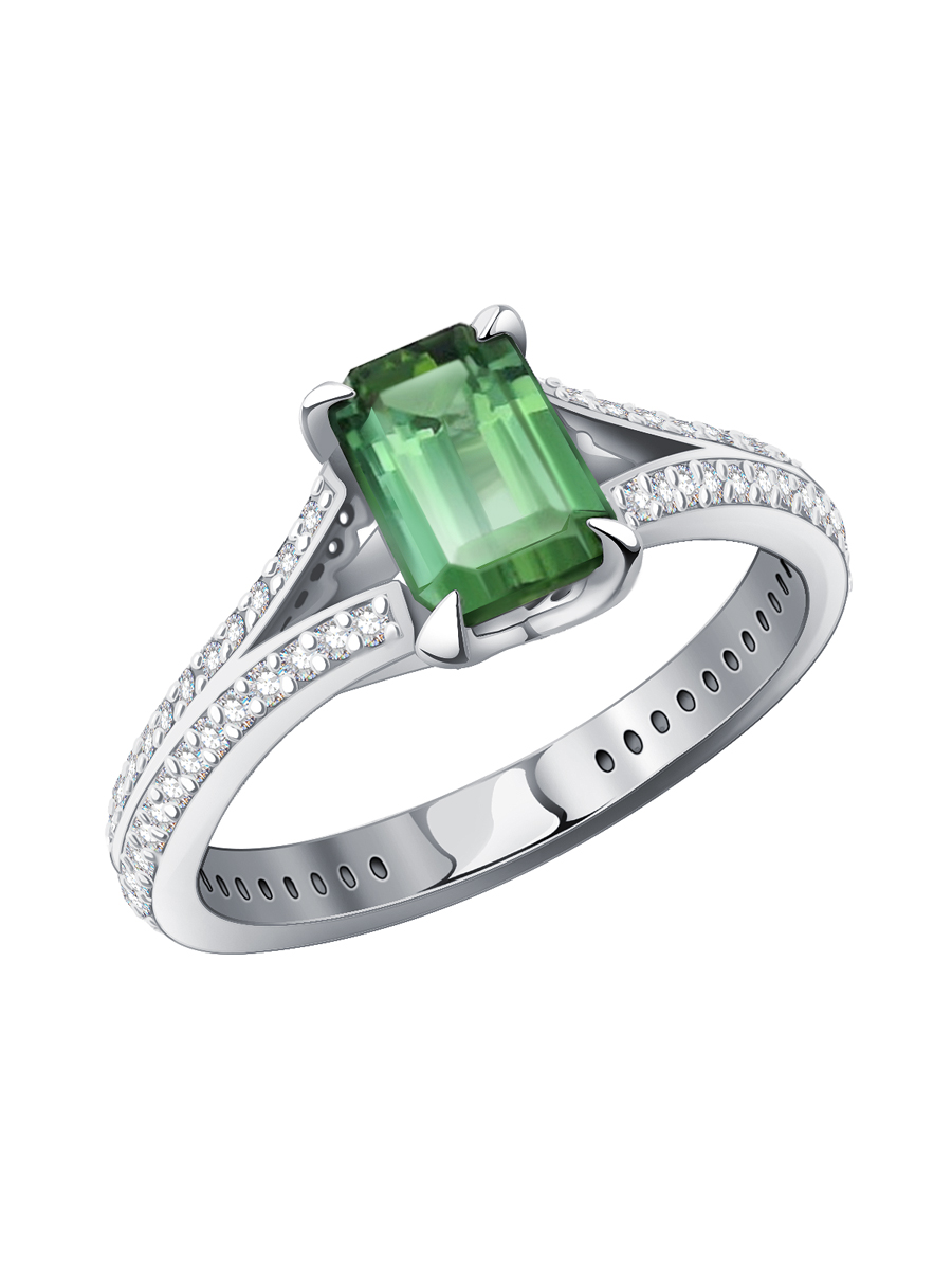 Кольцо из белого золота 585 с зеленым турмалином и бриллиантами 9101460-01522