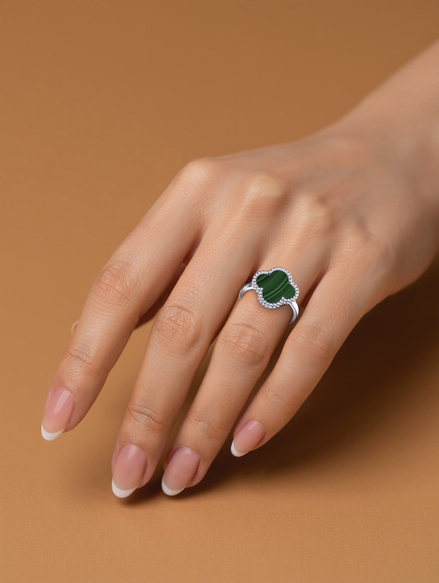 Кольцо 0101809-05725 Ag 925 (2020257516237 (1 Малахит клевер 12,00*12,00 0,303 г.))