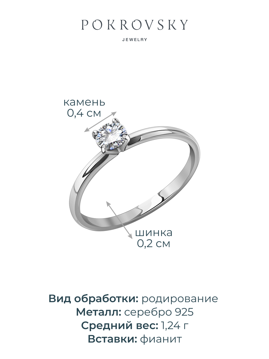 Кольцо серебряное 925 с фианитом 0101510-00775
