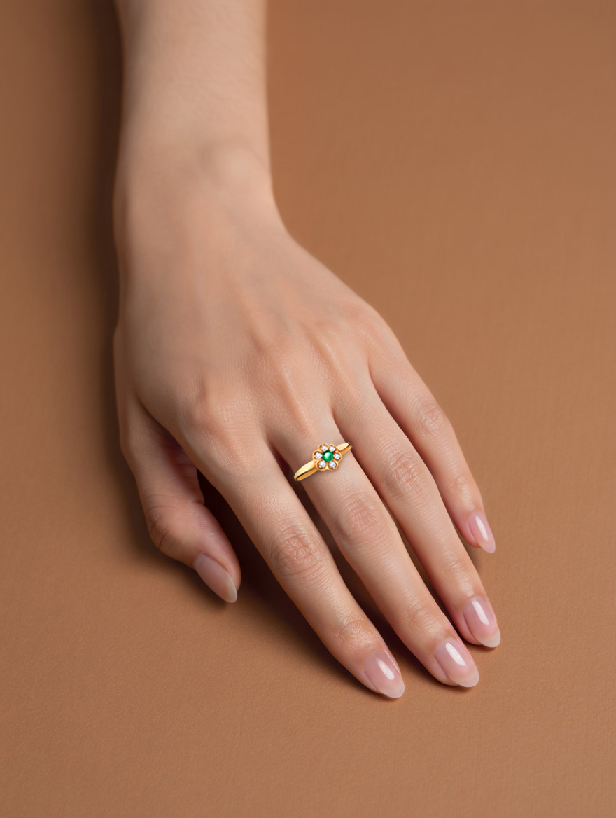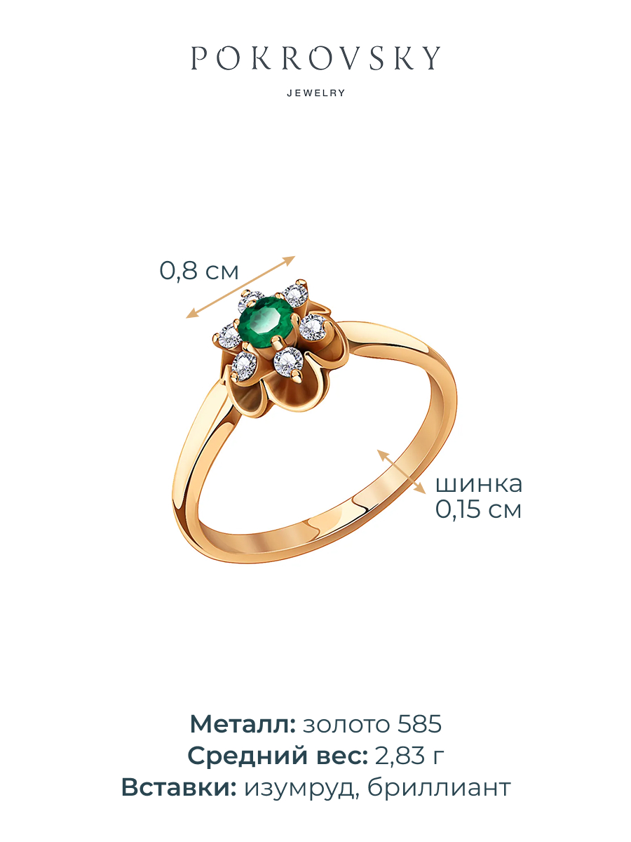 Кольцо цветок золотое 585 с изумрудом и бриллиантами