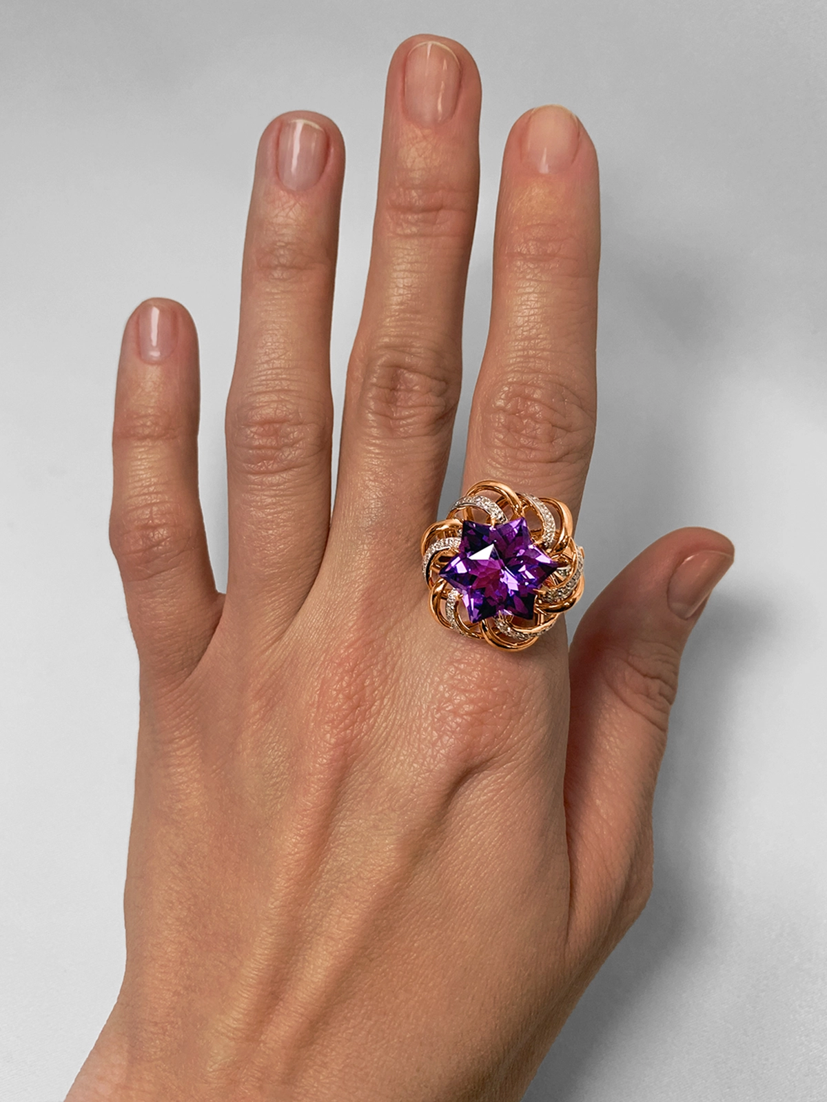 Кольцо золотое 585 с аметистом и бриллиантами 9101291-02970