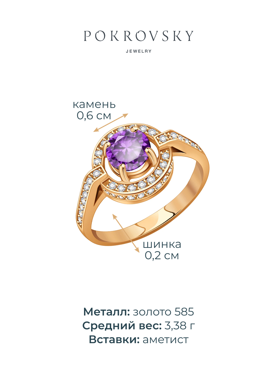 Кольцо 1100187-00230 Au 585 (ШК: 2000017100852; Размер: 18.0; Вставка: 1 А. круг 6,00 0,710Ct ,30 ф. кр. 1,25 ,16 ф. кр. 1,00; Ве)