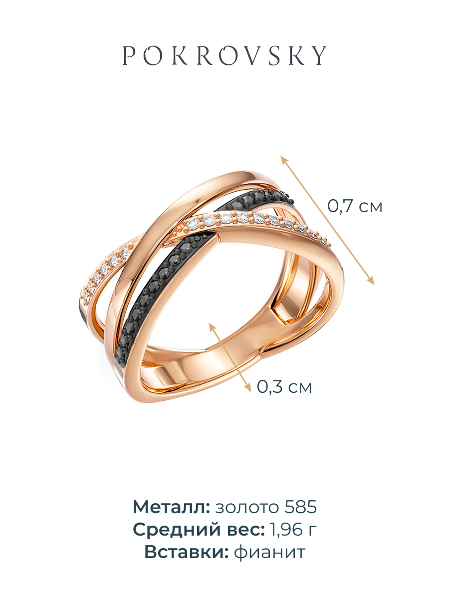 Кольцо 1101762-00210 Au 585 (2020266811972 (16 Фиан. кр. 1,00 0,032 г. ,15 Фиан. кр. 1,00 0,03 г. черный))