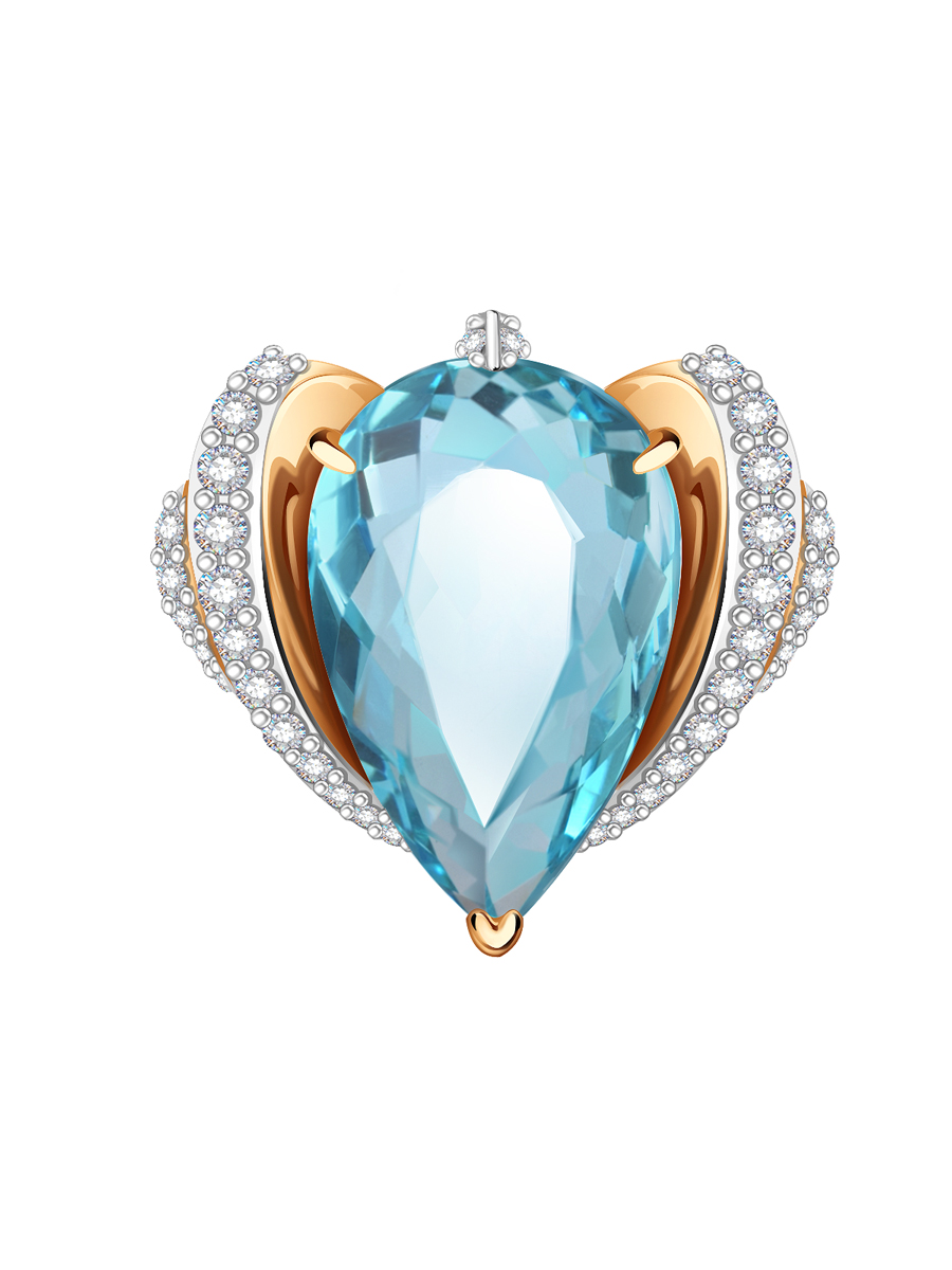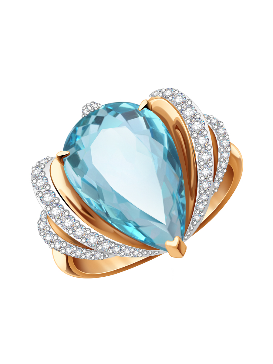 Кольцо золотое 585 с голубым топазом и бриллиантами 9101430-00100