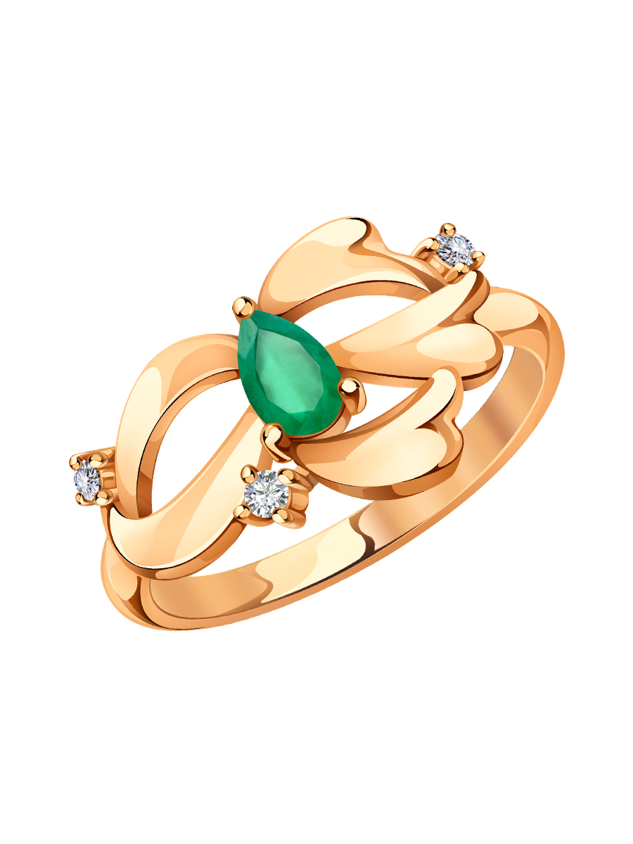 Кольцо золотое 585 с изумрудным агатом и фианитами