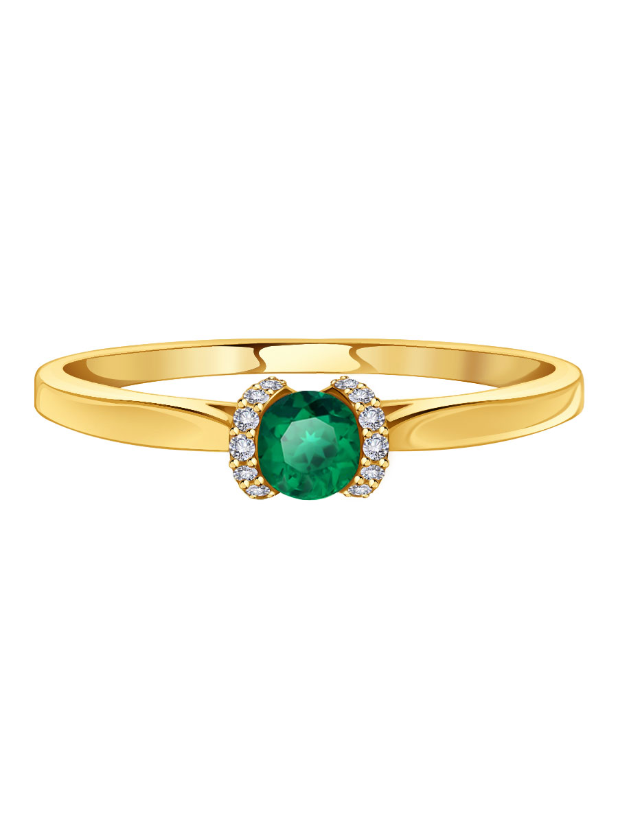 Кольцо 1100555-00061 Au 585 (ШК: 2020042066695; Размер: 15.5; Вставка: 14 Бр. кр57 (0,90) 0,042 ct 3/5 /А ,1 Изумр. круг 4,00 0,2)