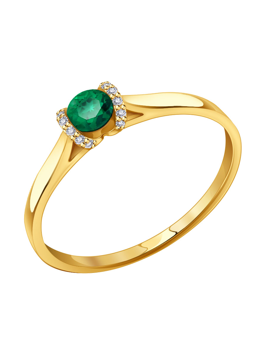 Кольцо золотое 585 с изумрудом и бриллиантами