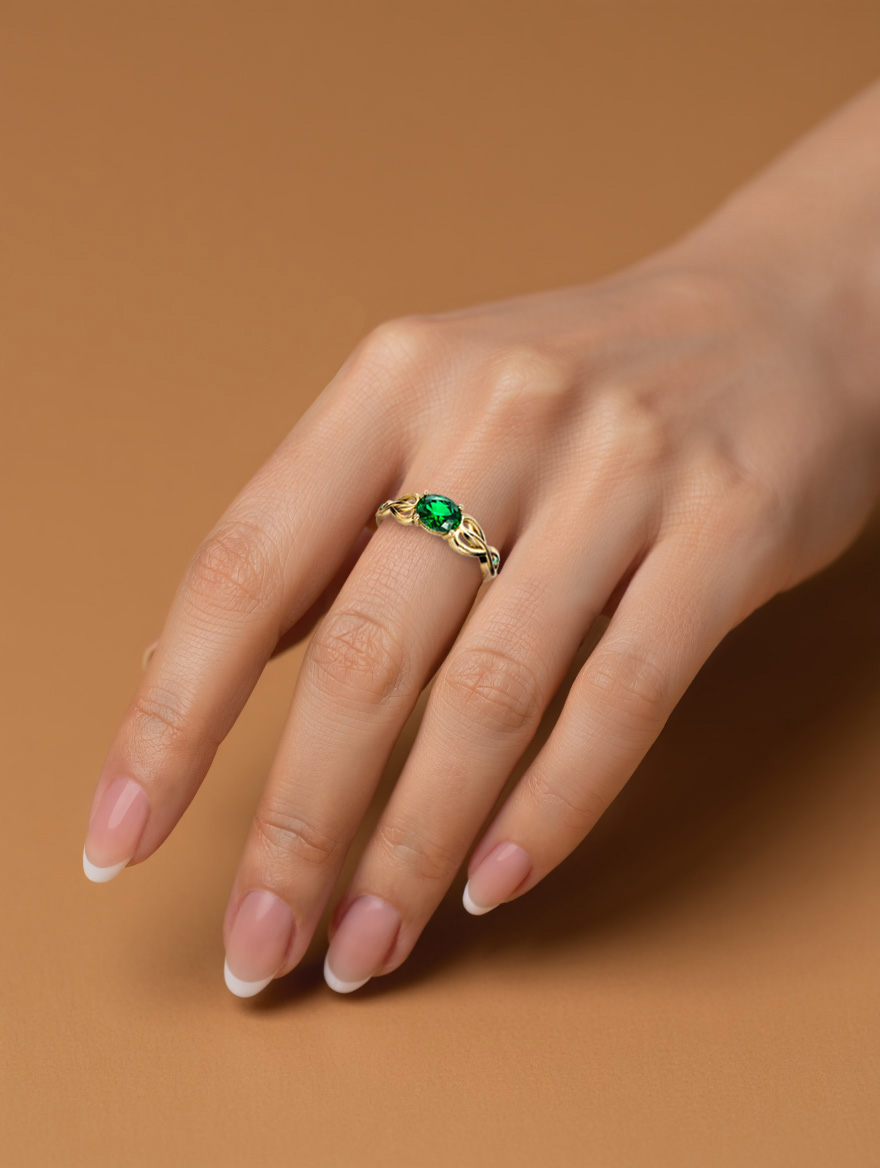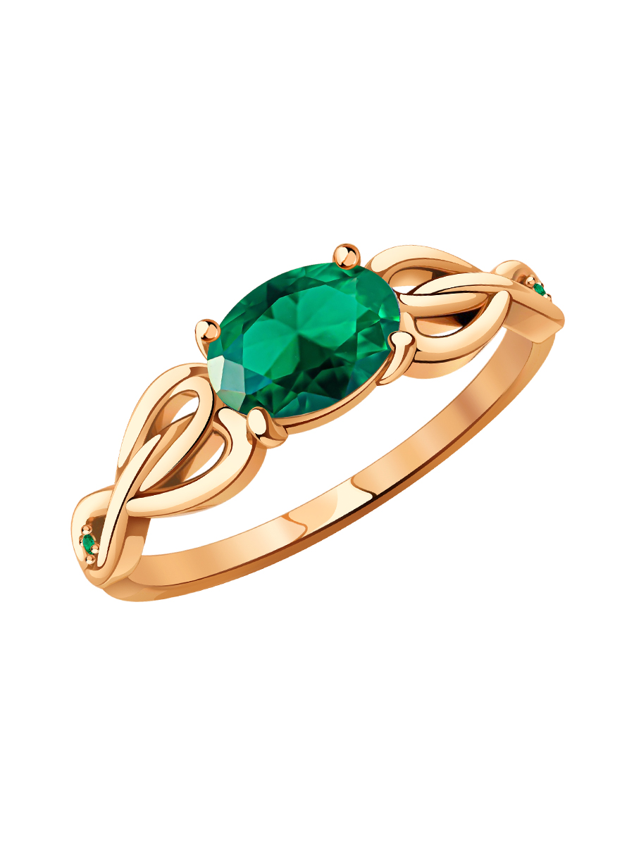 Кольцо 1100846-00020 Au 585 (2020263481710 (1 Изумр. овал 7,00*5,00 0,73 ct 3/3 ,2 Изумр. круг 1,50 0,03 ct 3/2))