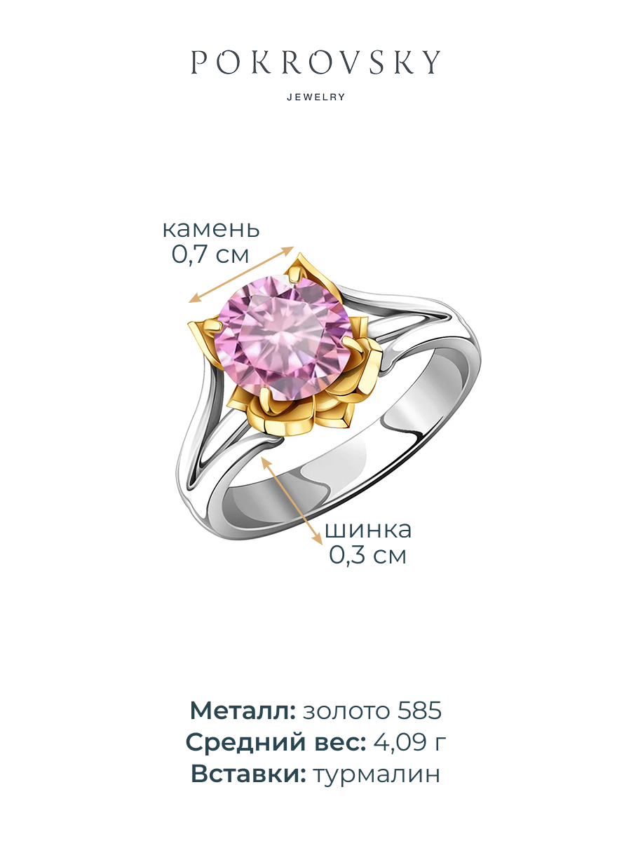 Кольцо 9100713-00928 Au 585 (ШК: 2020075972604; Размер: 17.5; Вставка: 1 Турм. круг 7,50 1,46 ct розовый; Вес: 4,09)