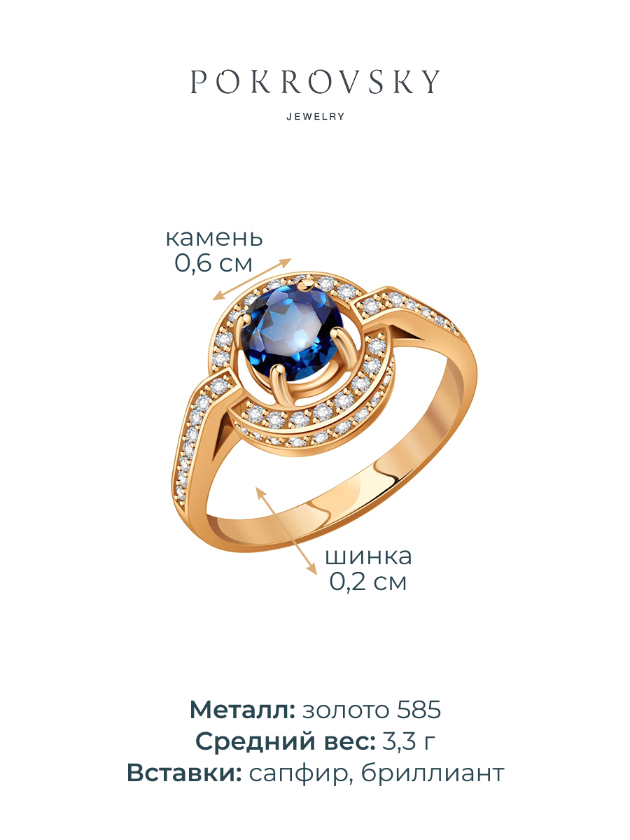 Кольцо золотое 585 с сапфиром и бриллиантами