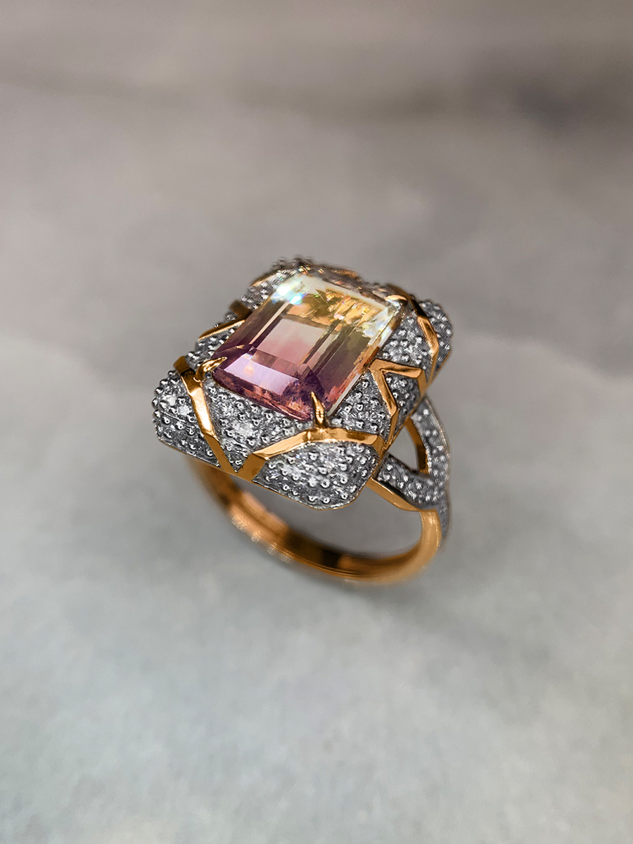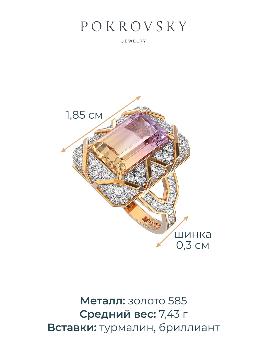 Кольцо золотое 585 с турмалином и бриллиантами 9101209-01520