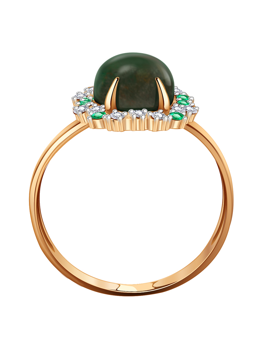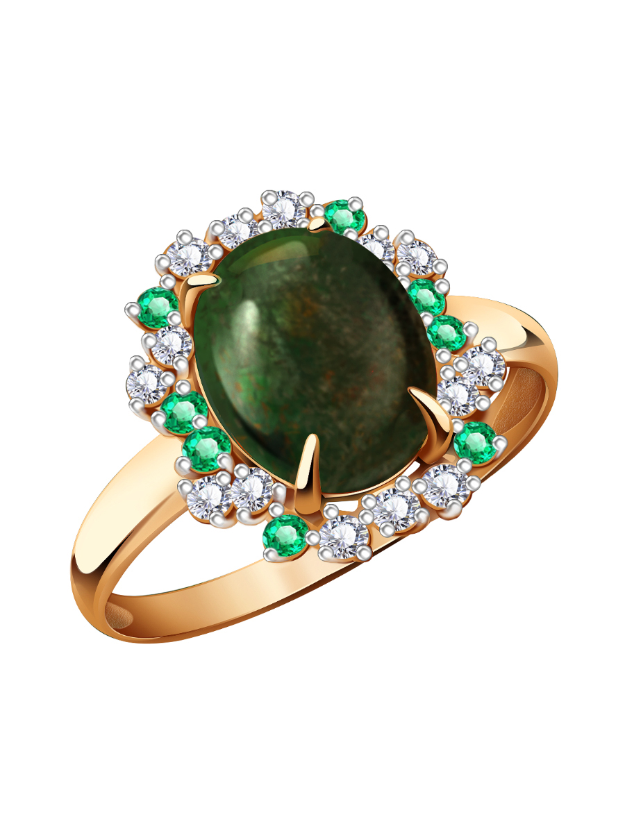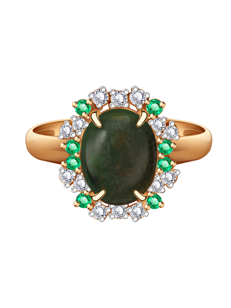 Кольцо золотое 585 с зеленым опалом изумрудами и бриллиантами 1101494-15010