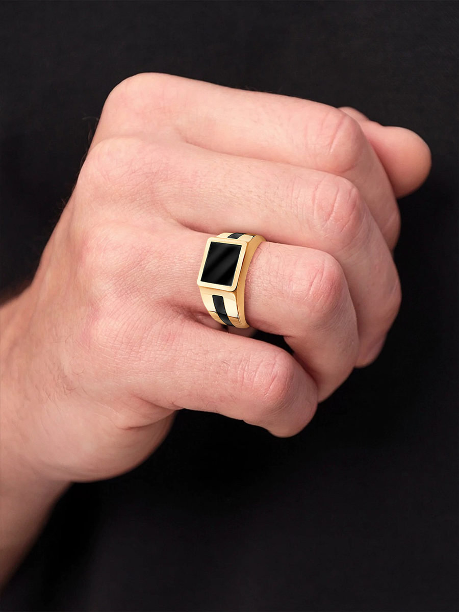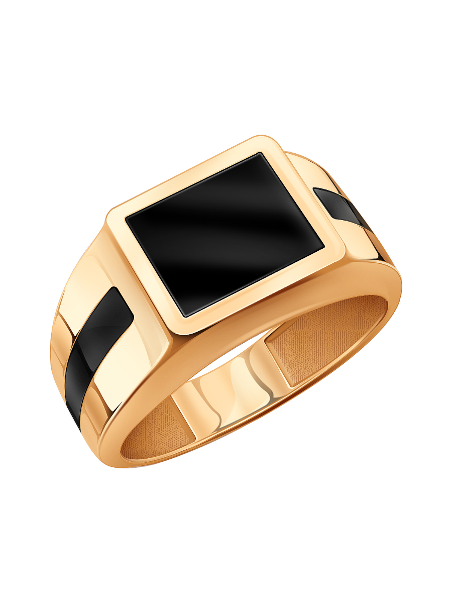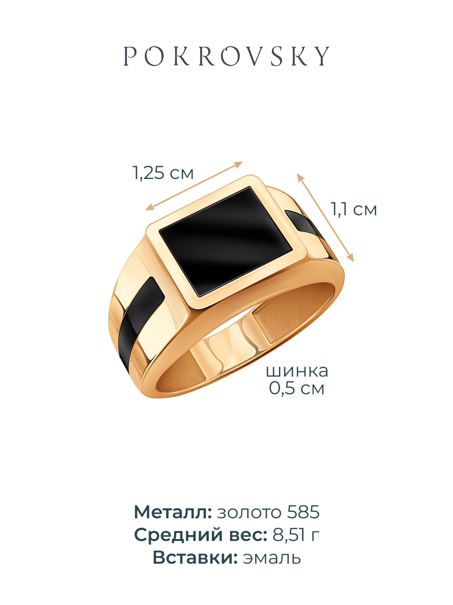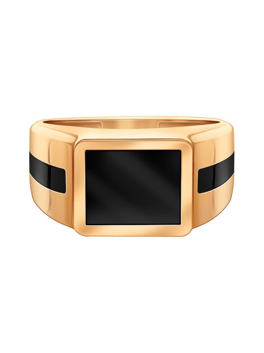 Кольцо печатка золотое 585 с черной эмалью 9101499Л06010