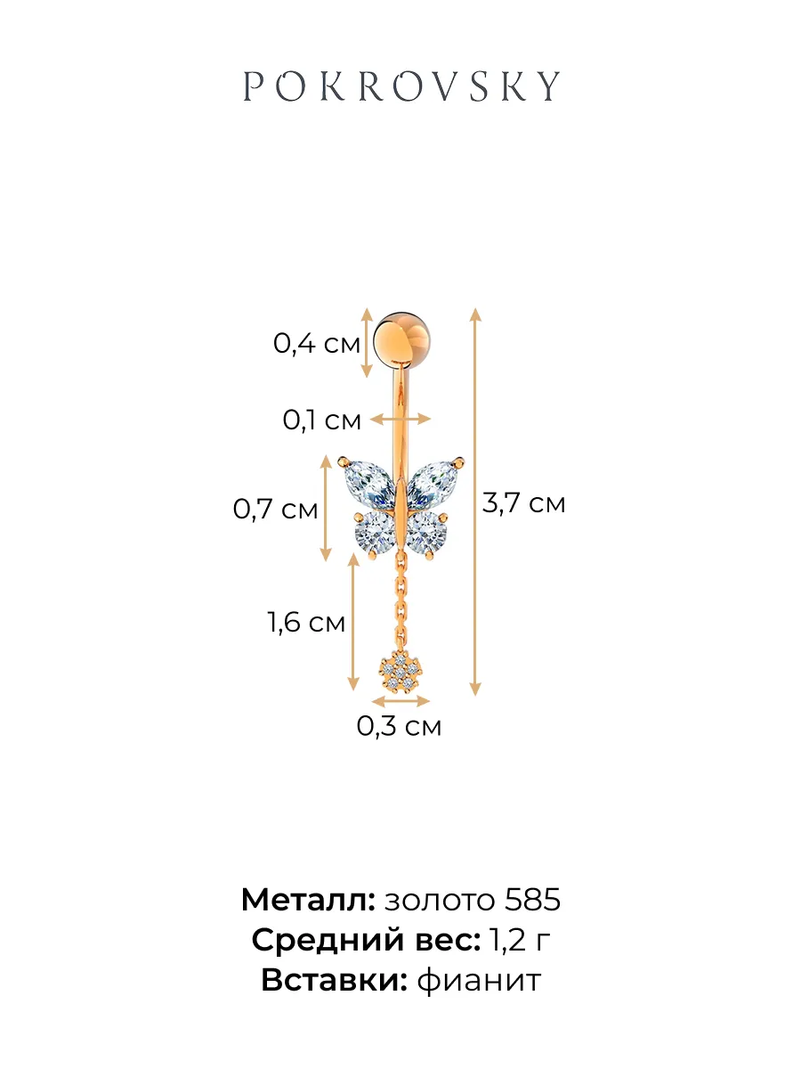 Пирсинг бабочка из золота 584 с фианитами 0620025-00770