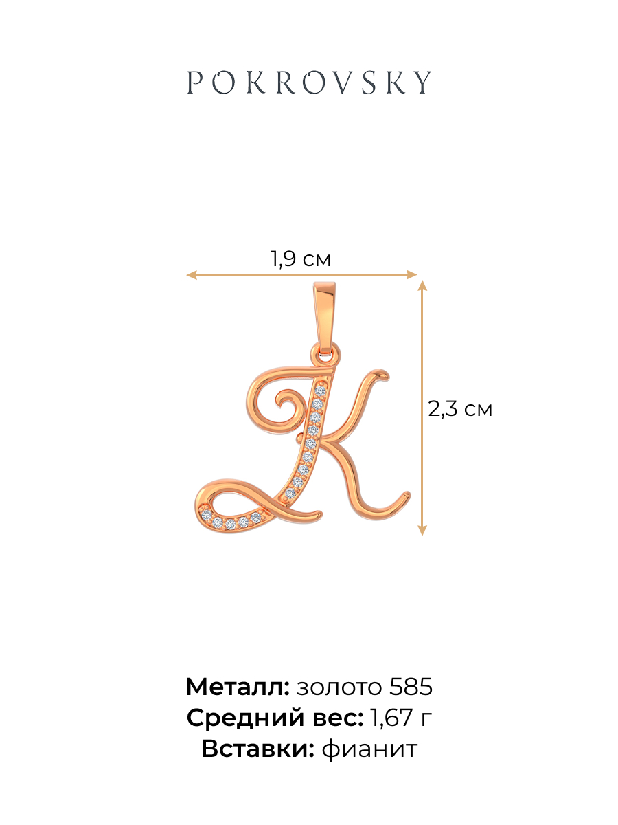 Подвеска буква К золотая 585 с фианитами 0400828-00770