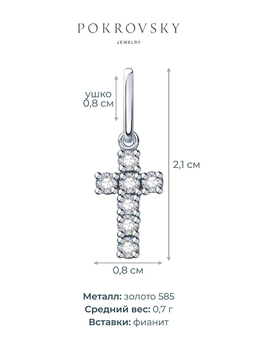Подвеска крестик серебряный 925 с фианитами 0800062-00775