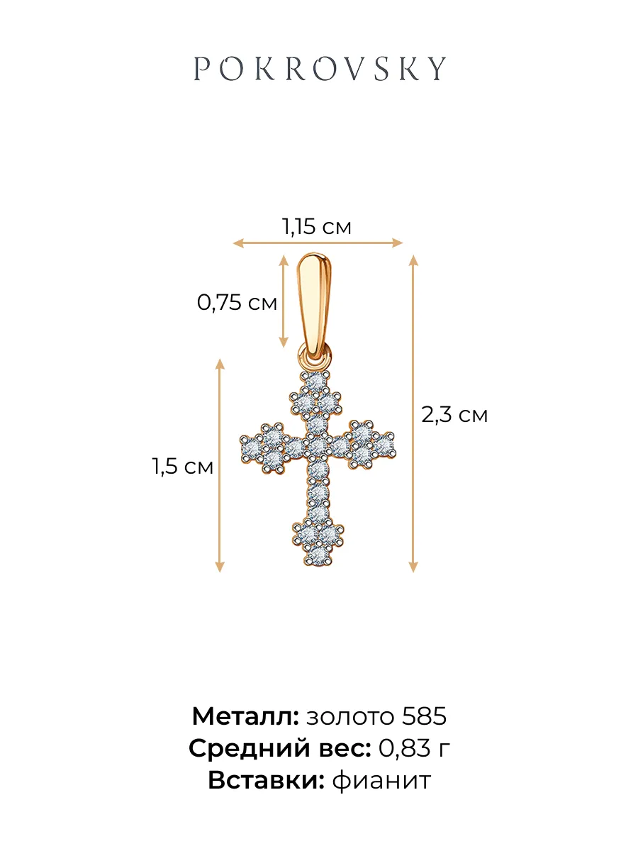 Подвеска 0800173-00770 Au 585 (ШК: 2000024343280; Вставка: 19 фианит Кр 0,114; Вес: 0,83)