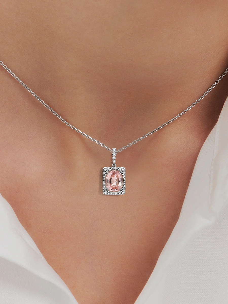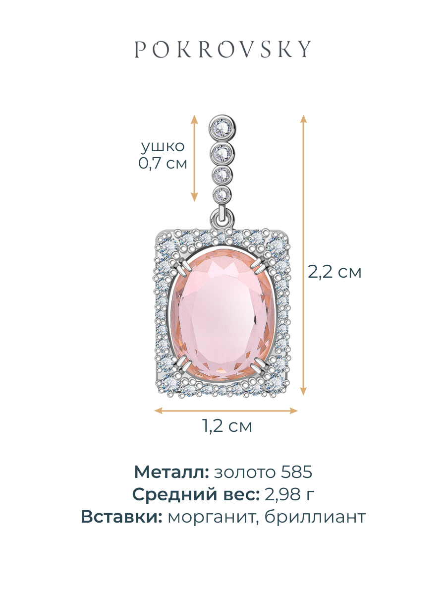 Подвеска из белого золота 585 с морганитом и бриллиантами