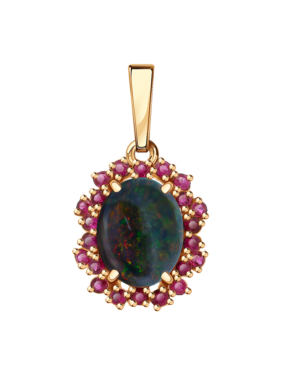 Подвеска 4101494-85000 Au 585 (2020265555136 (1 Опал овал кабошон 10,00*8,00 1,4 ct ,22 Рубин круг 1,50 0,418 ct 2/2))