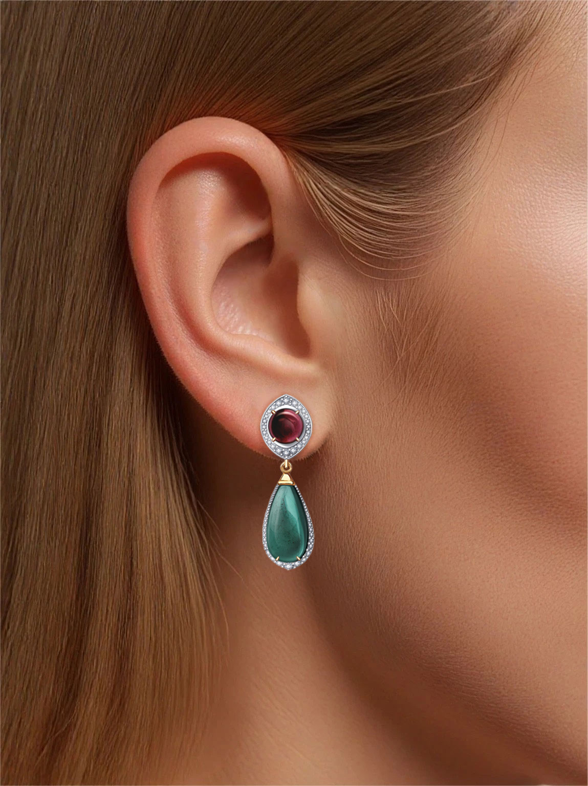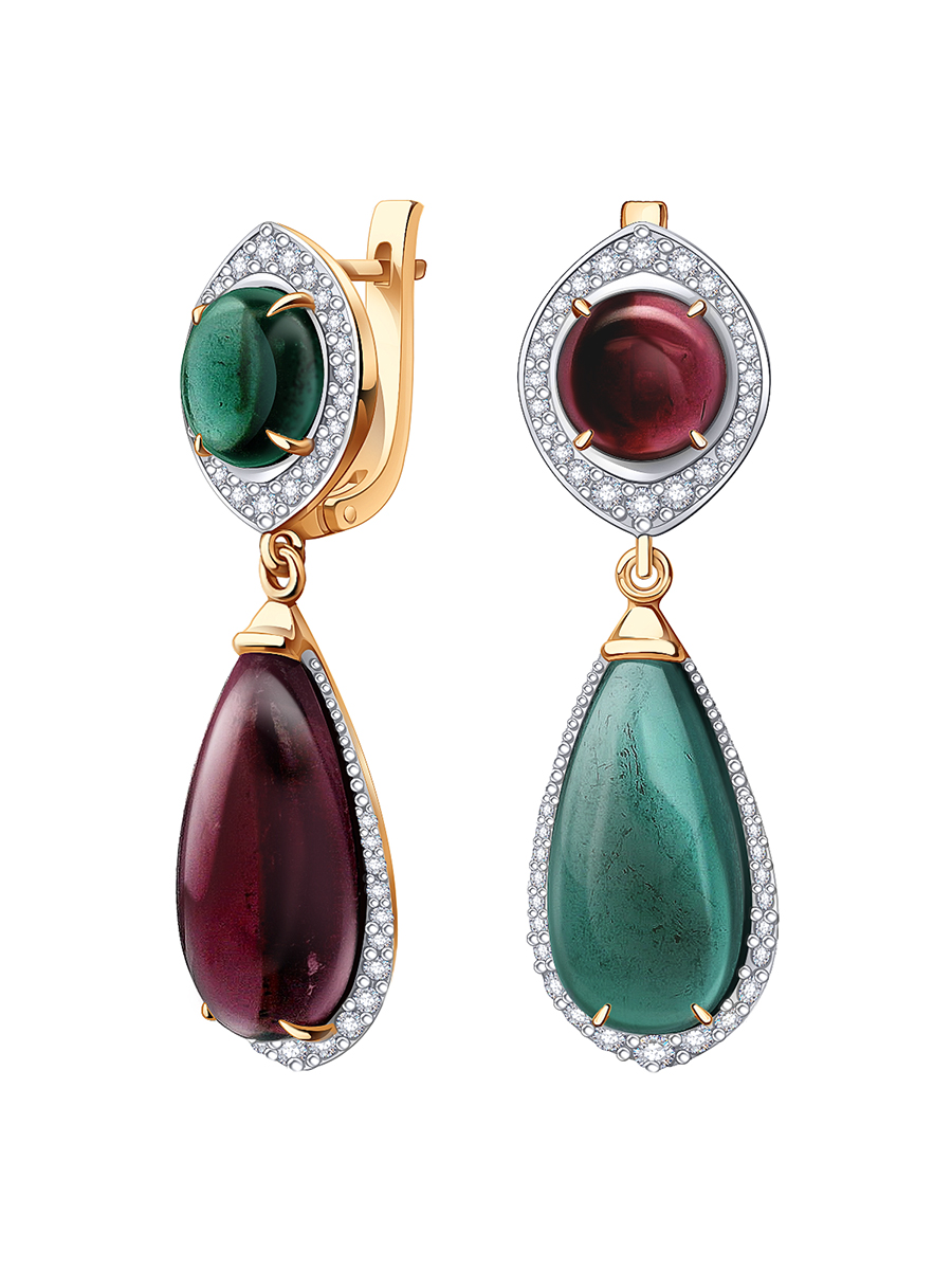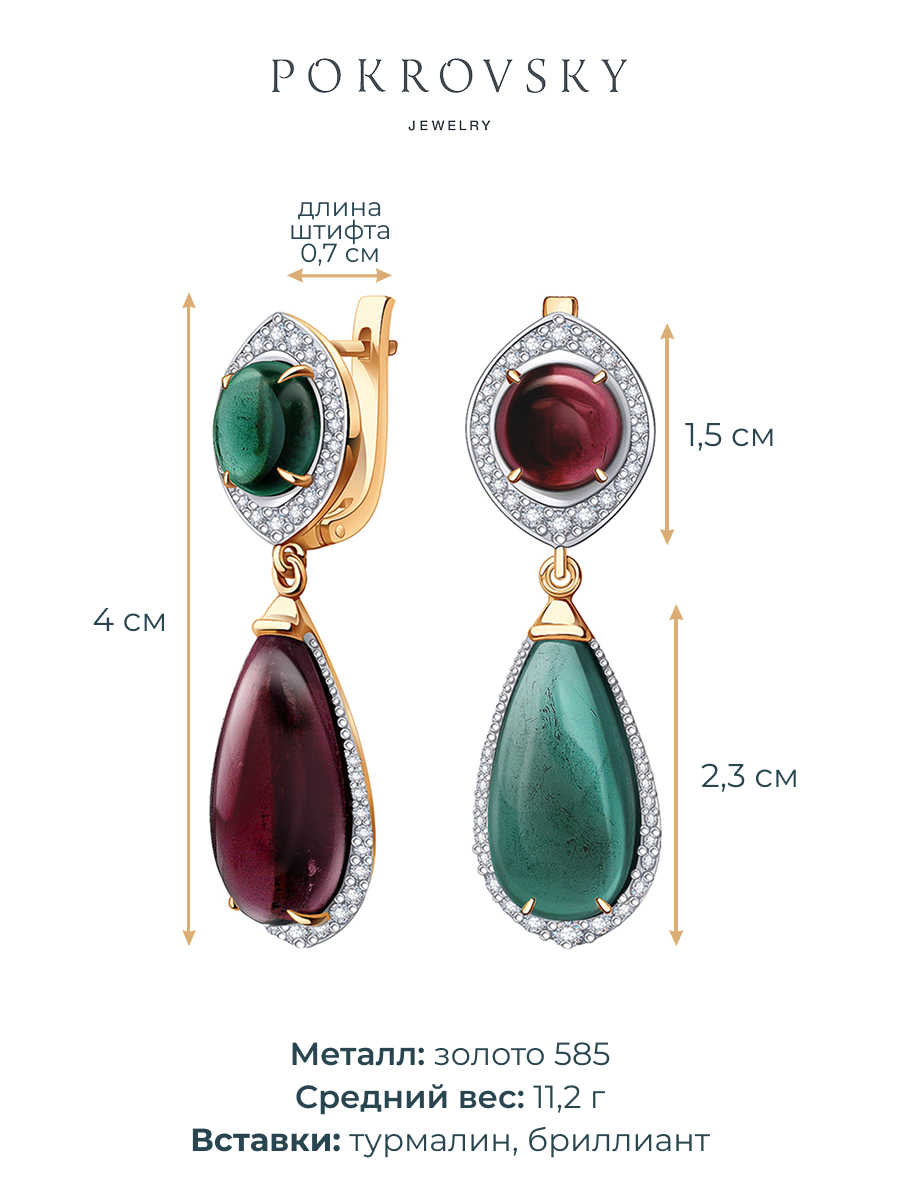 Серьги золотые 585 с турмалинами и бриллиантами